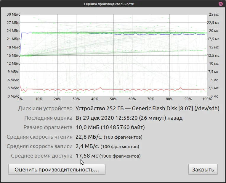 Медленная. Смартфон не определяет. Объём 58,5 мб из 64.