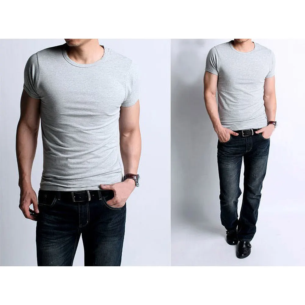 Футболка мужская стрейчевая, хлопковая Повседневная тенниска с круглым вырезом, майка для активного отдыха