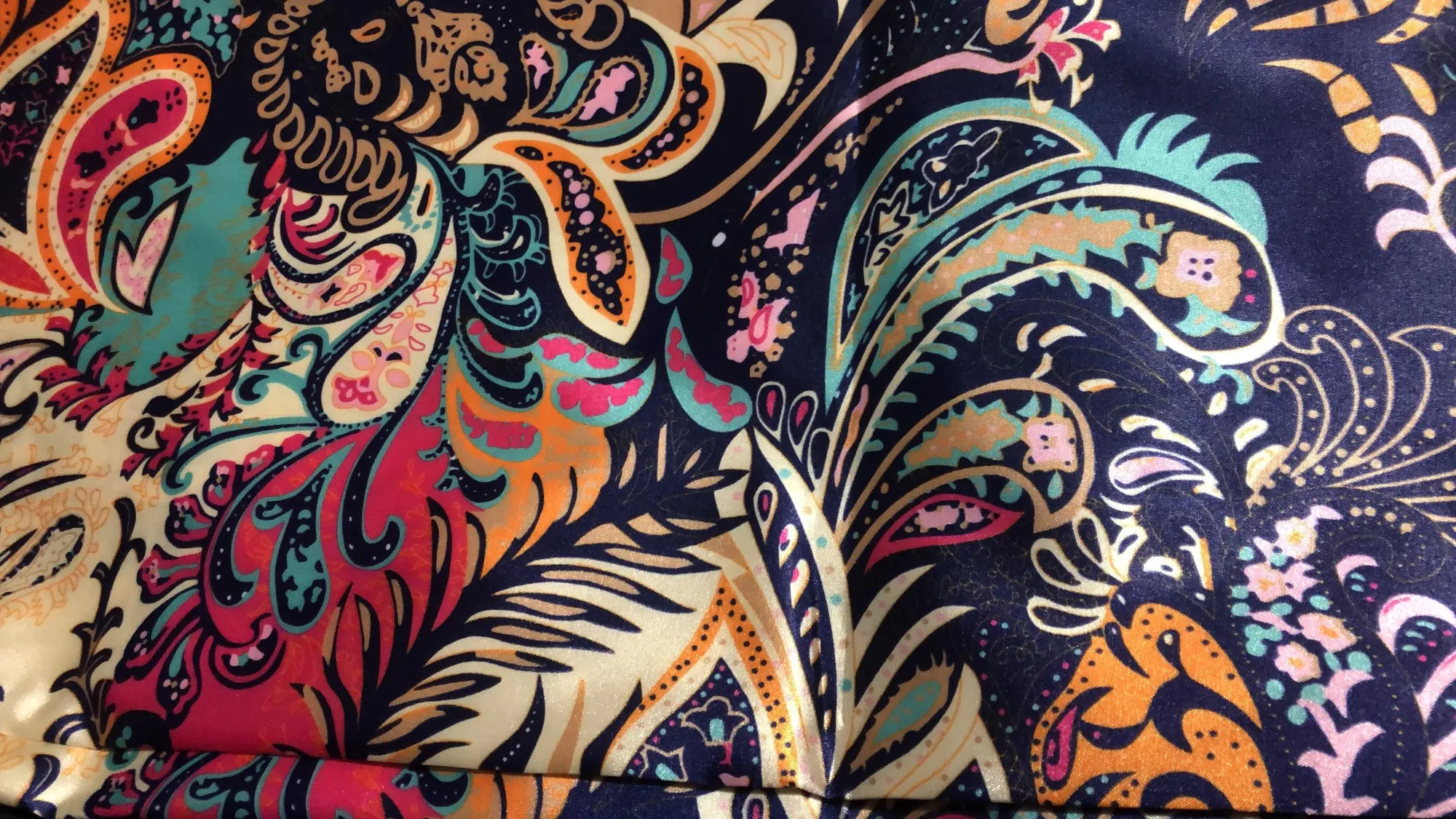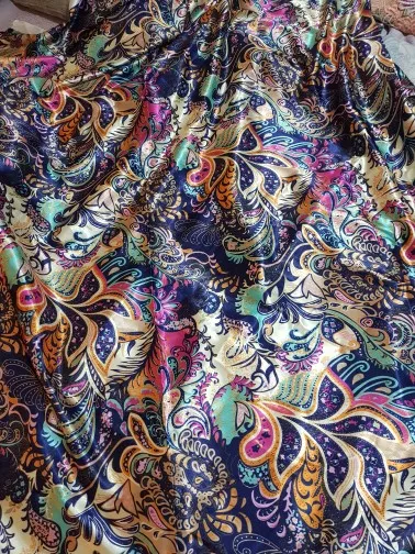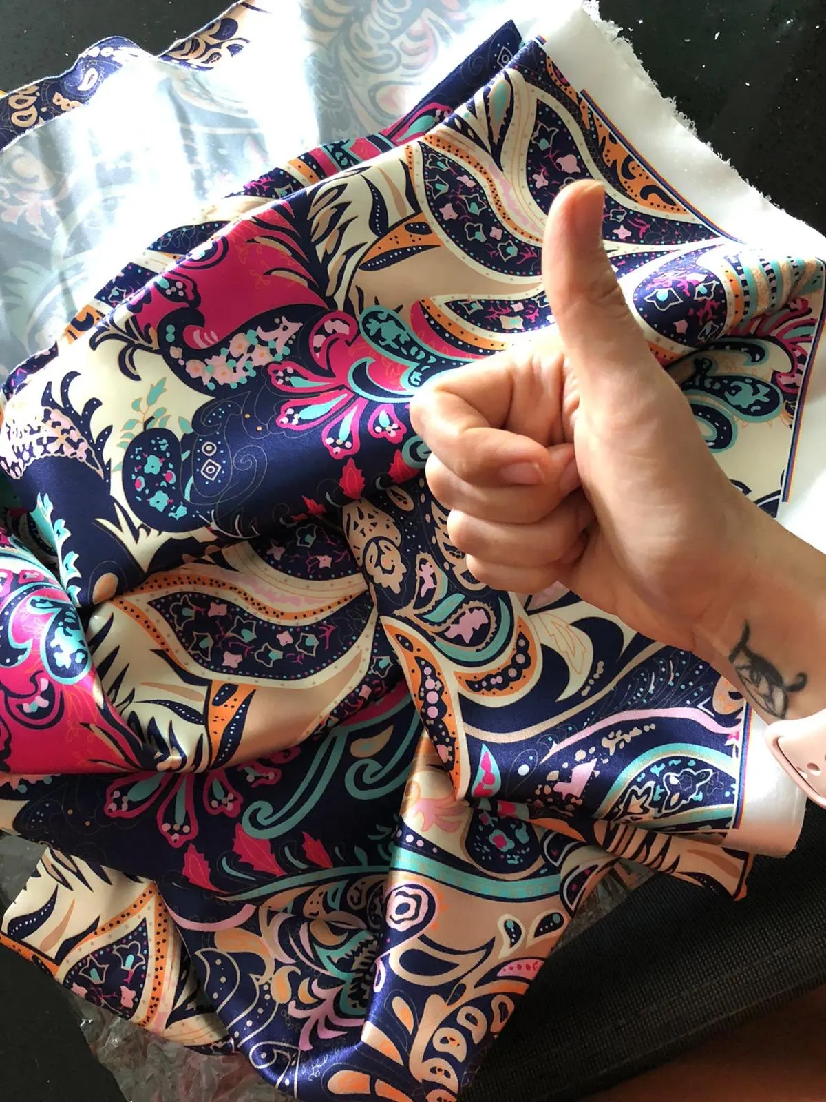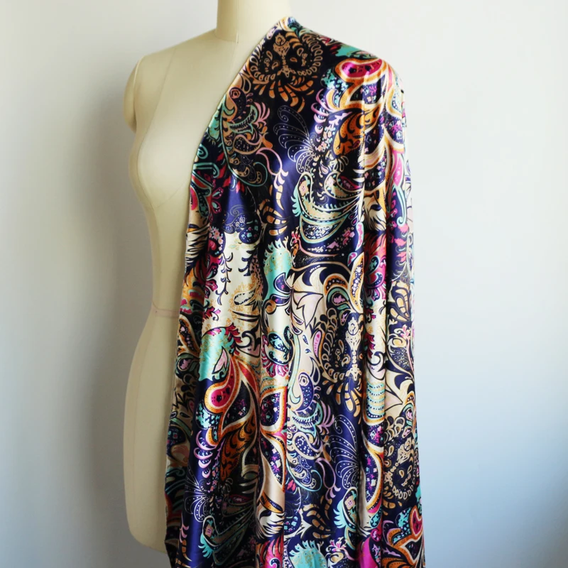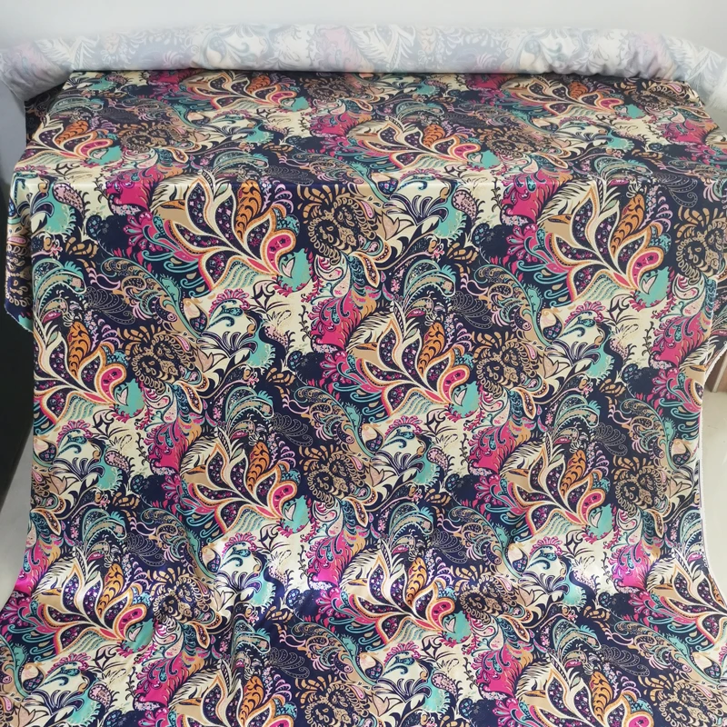 Оптовая продажа, Мягкая атласная ткань из спандекса для шитья, винтажные цветы, имитация шелка, эластичная тянущаяся атласная ткань с принтом
