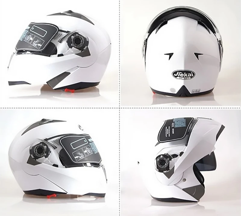 Корпус: высококачественный корпус из АБС-пластика, устойчивость к проникновению, ударопрочностьБуферный слой: подкладка из пены высокой плотностиС: высококачественный COOLMAX, дезодорант, поглощающий пот, и отпивать и мытьМодель: JIEKAI-105Цвет шлема: черный, матовый черный, красный, белый и т. Д.Оригинальные прозрачные линзы для шлемаРазмер: M (56-58 см), L (59-60 см), XL (61-62 см) XXL (63-64 см)Вес: 1500 г ± 50 гСертификация: ECE, DOT стикер