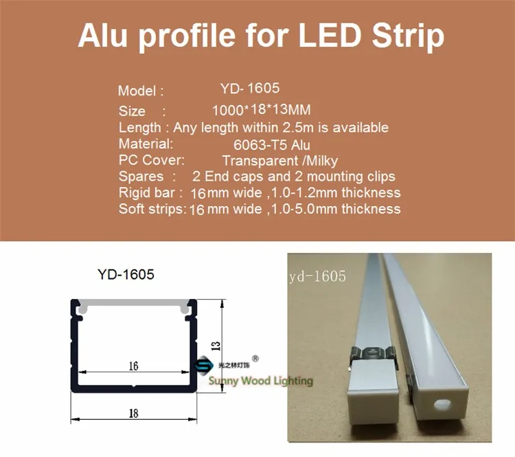 5-30 шт.лот 1 м 40-дюймовый СВЕТОДИОДНЫЙ алюминиевый канал, профиль полосы с крышкой для 16-миллиметровой двухрядной ленты, W18 * h13мм световая полоса