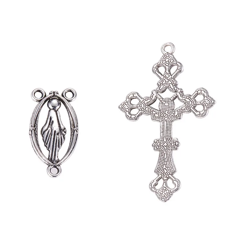 10 комплектов, четки крест и центральный комплект для четки из бусин, ожерелье из сплава, крестообразные подвески и девственные звенья для изготовления ювелирных изделий без свинца