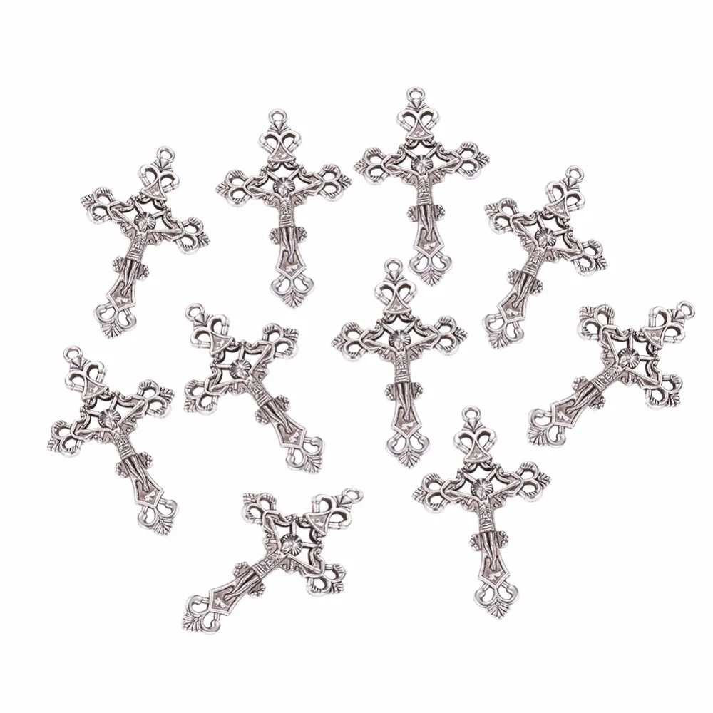10 шт.набор, сплав античное серебро Цвет ожерелье распятие Подвеска...