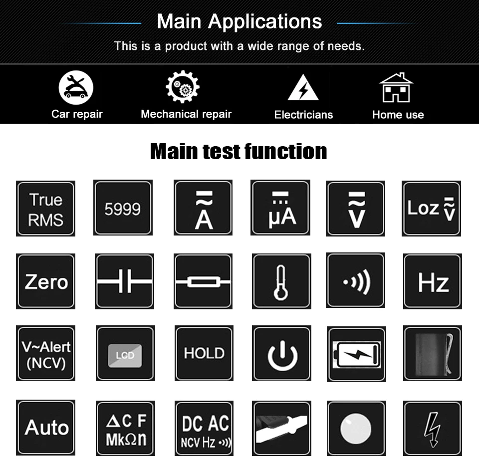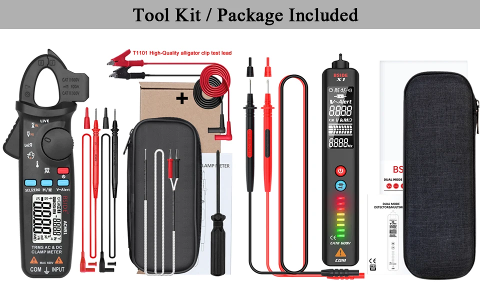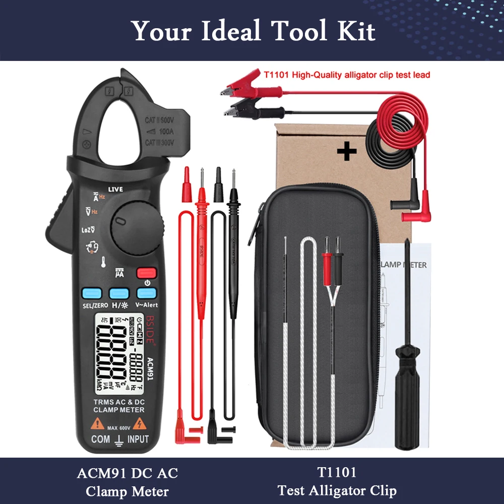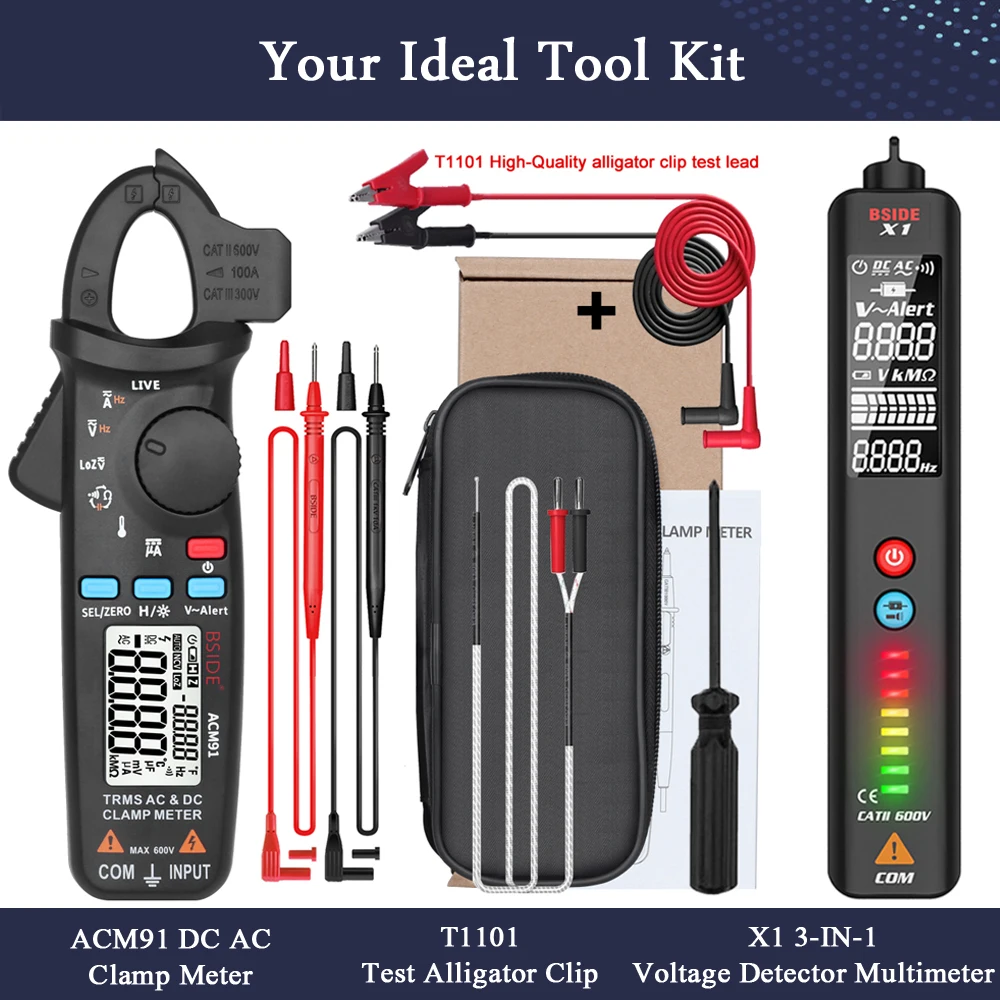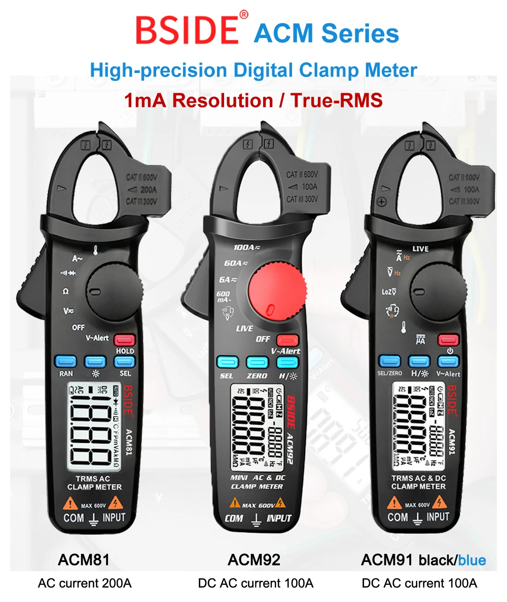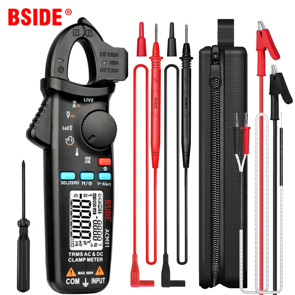 Цифровые токоизмерительные клещи BSIDE, T-RMS, 1 мА, высокоточный амперметр постоянного тока, переменного тока, мультиметр для ремонта автомобилей, напряжение, температура, конденсатор, Ом, Гц, тестер