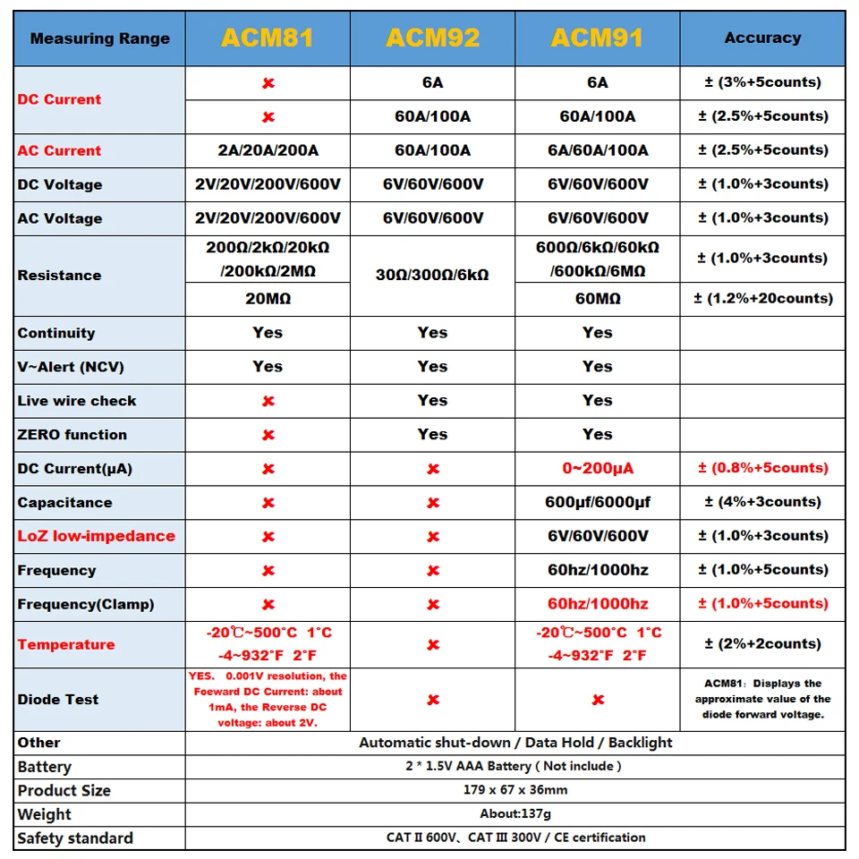 покупал токовые клеща, а приобрёл насто ящий мультиметр. Сказать за точность не могу нет образцовых измерительных приборов, но прибор мне очень понравился по функциональным возможностям.