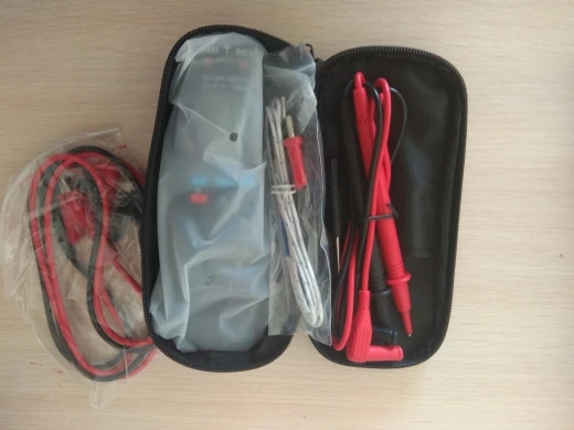 Забавный прибор. Доехал целым. Упакован хорошо, коробка картонная слегка примялась с одного бока, в остальном все целое. Есть инструкция на китайском и английском. Щупы мягкие, довольно удобные. Часть функций проверил, работают, правда точность померять особо нечем. В принципе все отлично, но по удобству ложечку дёгтя добавить придётся из-за чехла, не удобный, все сваливаешь в кучу, как в мешок. Удобнее будет использовать школьный пенал подходящих размеров с несколькими отсеками, в которые и разместить прибор со щупами, да и на улице с таким "чехлом" работать будет намного удобней чем с родным "одноотсечным". В общем прибор отличный, рекомендую.
