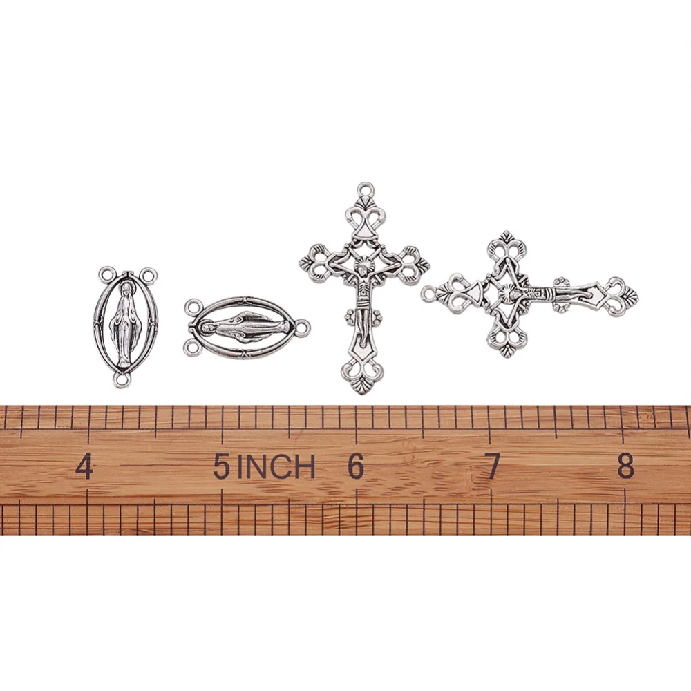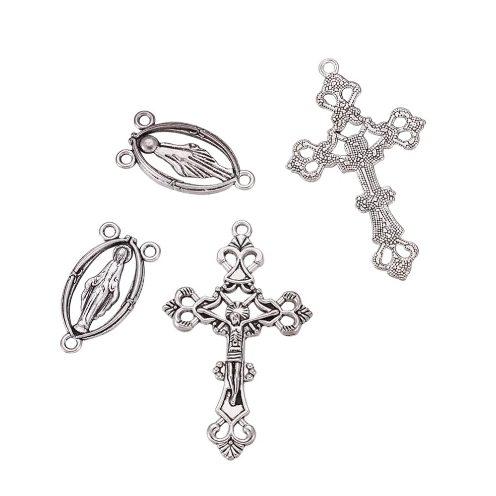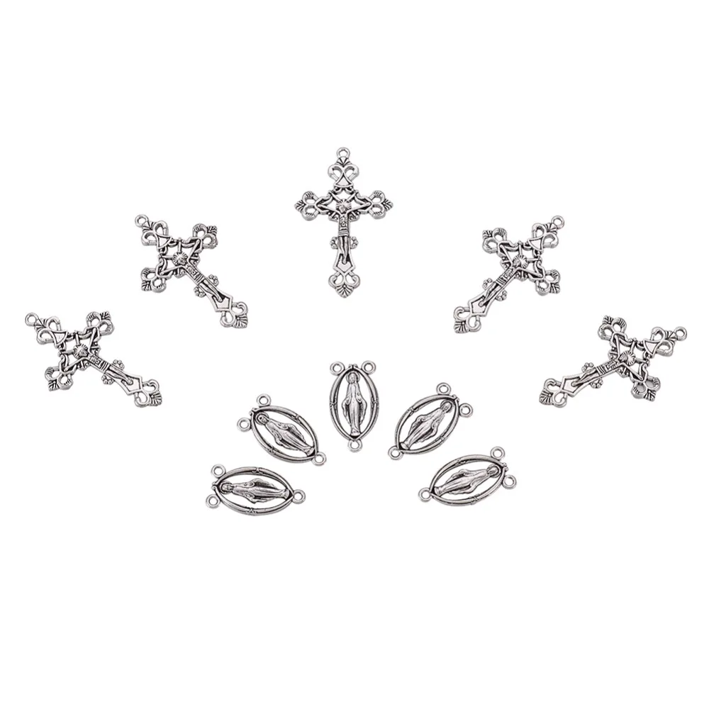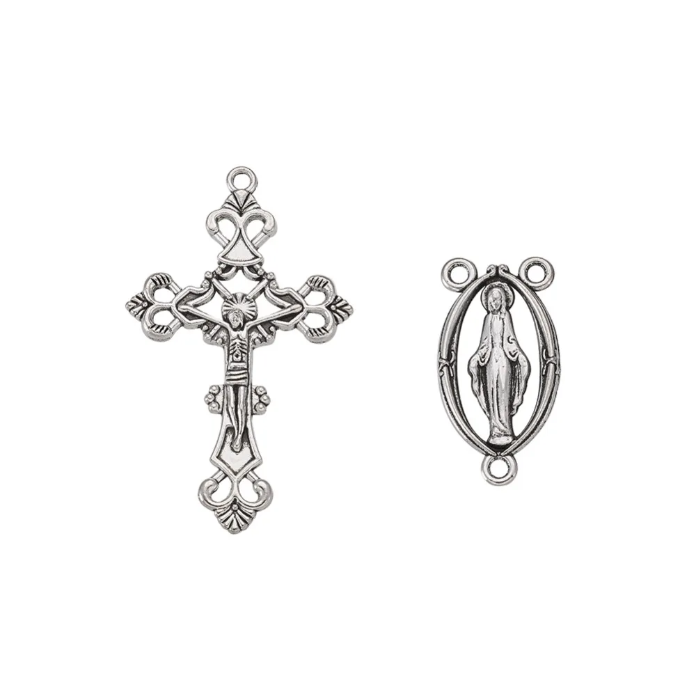10 комплектов Розария крест и центральный комплект для четки из бусин, ожерелье, сплав крестообразные подвески и девственные звенья античное серебро