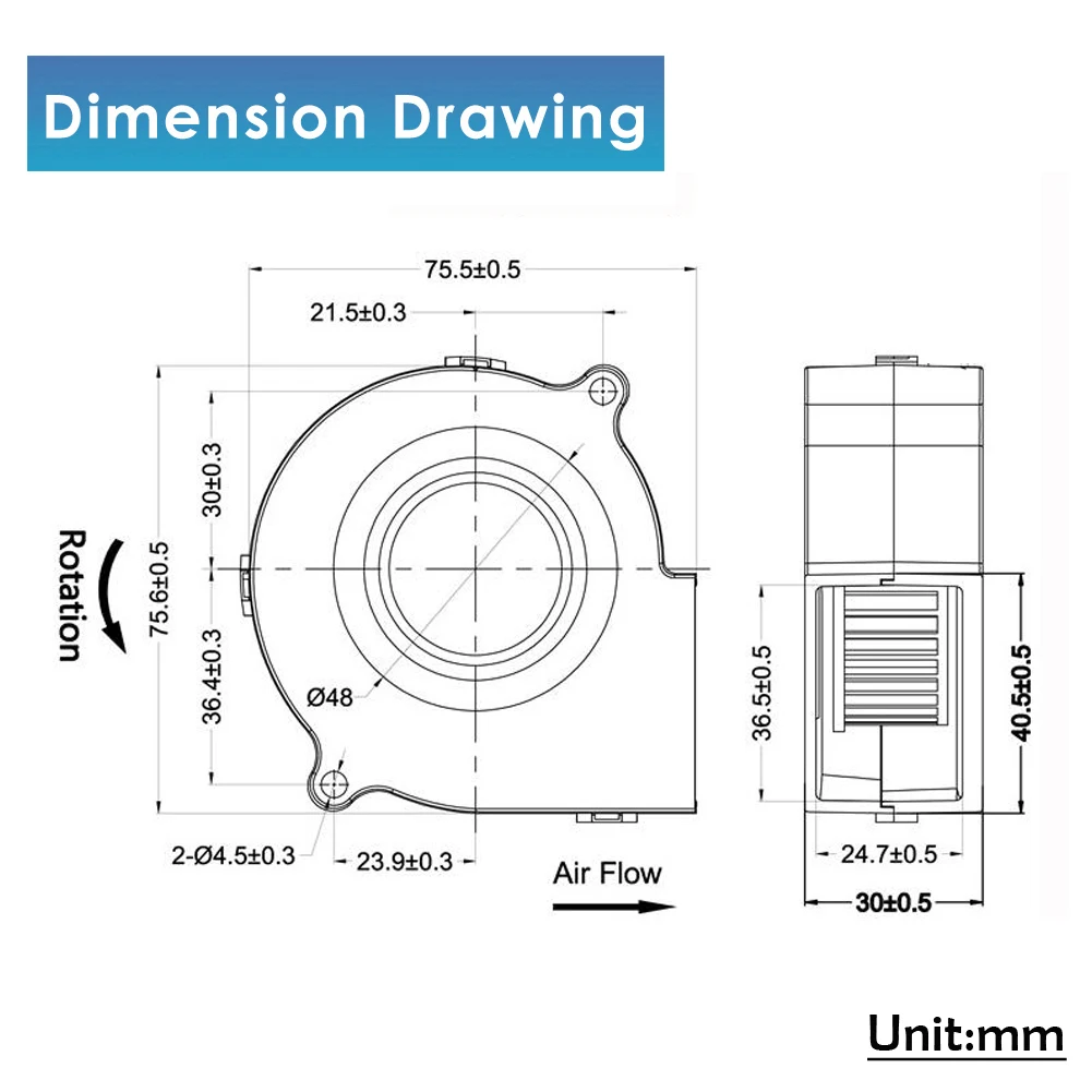 1 шт., охлаждающий вентилятор, 5 В, 12 В, 24 В, 7530 дюйма, 7 см, 75 мм x 30 мм, 7 см, 70 мм
