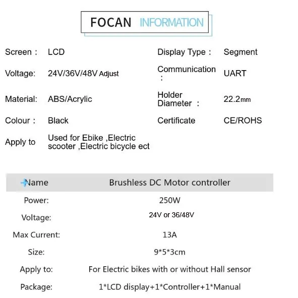 1,24 в 250 Вт и 36/48 в 250 Вт контроллер бесщеточного двигателя постоянного тока2. ЖК-дисплей Ebike панель отображения