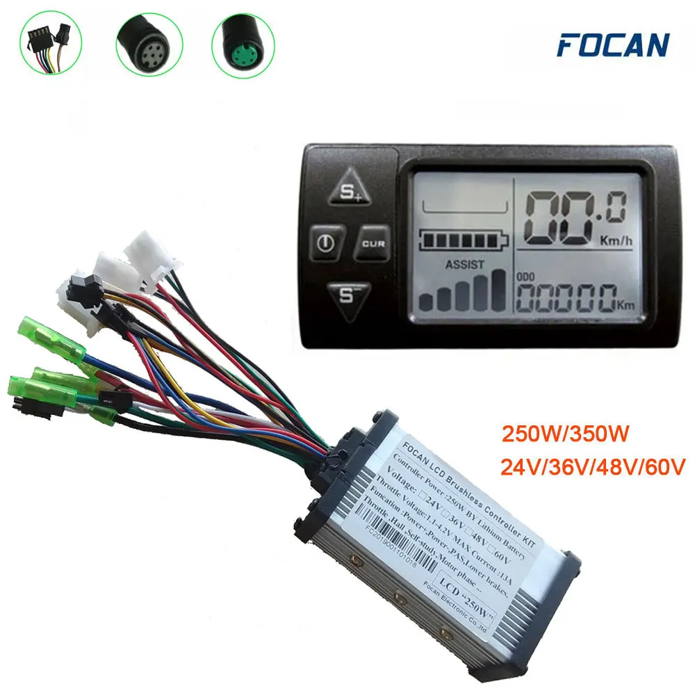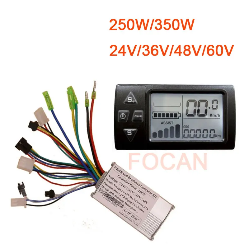 Контроллер для электрического велосипеда с ЖК-дисплеем для электровелосипеда, бесщеточный контроллер, 24 В, 36 В, 48 В, 250 Вт350 Вт