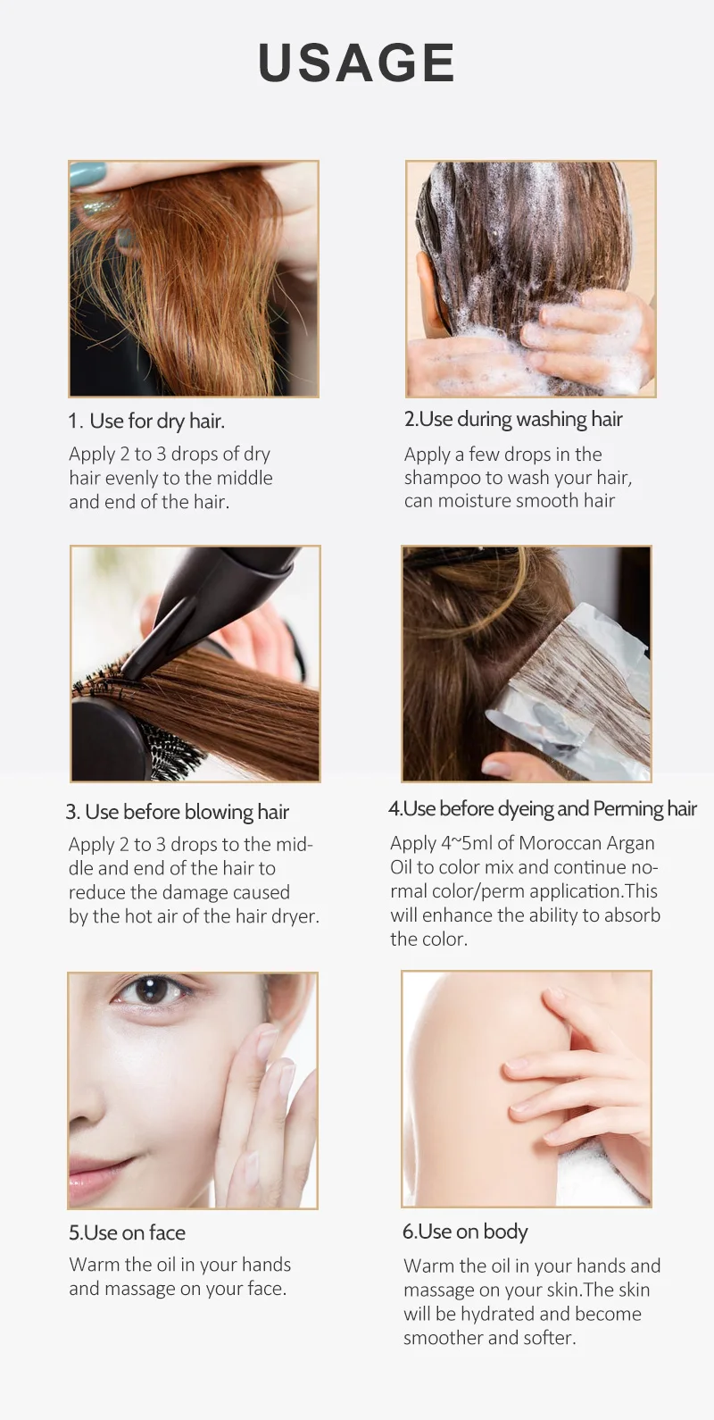 4. Используйте перед окрашиванием и завивкой волосНанесите 4 ~ 5 мл марокканского арганового масла для смешивания цветов и продолжите нормальное нанесение цвета/завивки. Это усилит