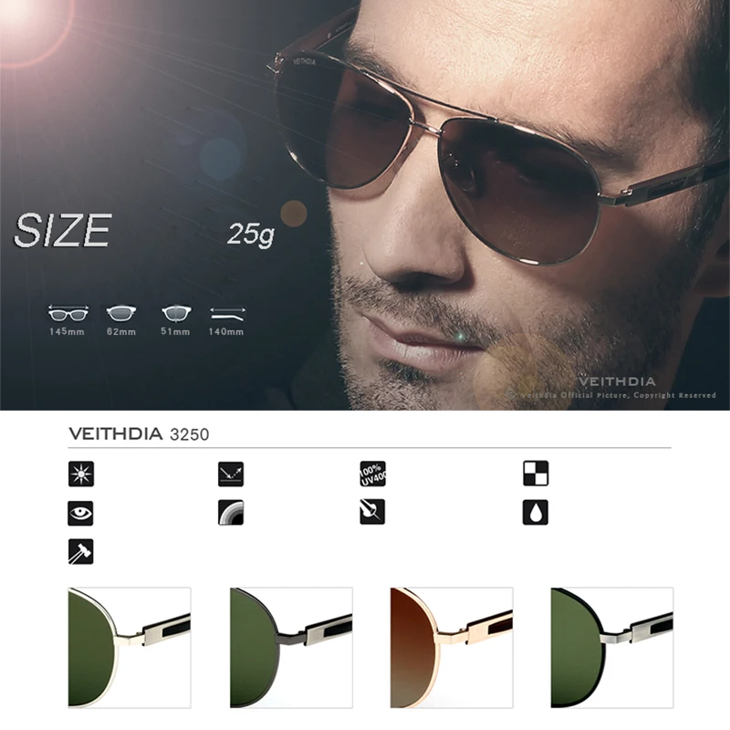 Солнцезащитные очки VEITHDIA, алюминиевые мужские поляризованные UV...