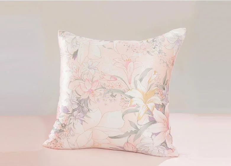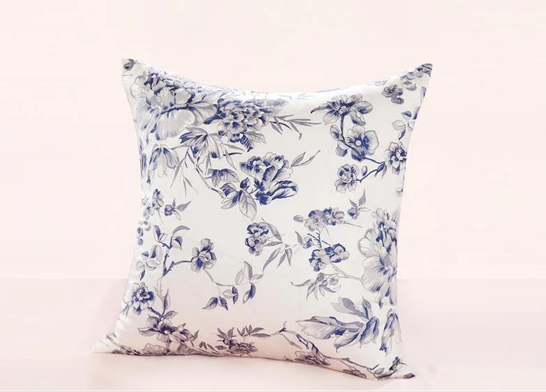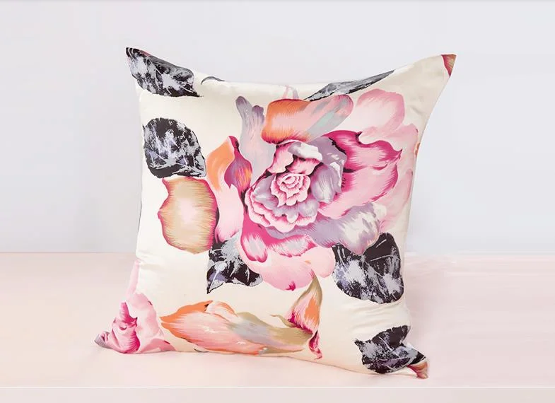 100% Шелковая подушка чехол с цветочным принтом 2 кристалла по бокам шелковая подушка чехол-кошелек на молнии, кошелек шелковая подушка