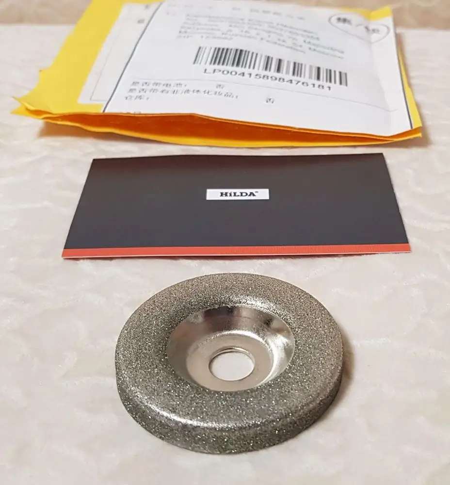 Абразивный диск для заточного станка HILDA. Старый ещё живой, но уже не такой "задиристый". Решил купить запасной, пока они есть в продаже. :-) Сделано добротно. Благодаря сменному диску станок ещё послужит верой и правдой! Доставили в Москву в одной посылке с другими товарами за пару недель. Рекомендую товар и поставщика.