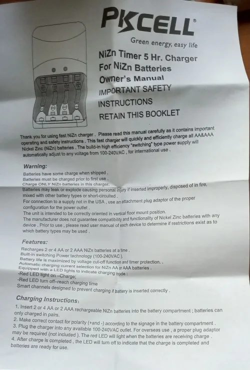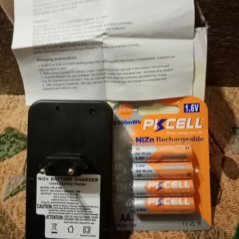 очень долго шло до мо. более 2 месяцев. жаль что зарядник не универсальный, а как пишут только для этих цинковых батареек. В посылке сами акумы в фирменном запаяном блистере, зарядное устройство в самой простой белой картонке и листок инструкции на английском