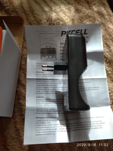 Зарядное устройство исправно, не совсем устраивает вариант контроля заряда аккумуляторов - лампочки как-то невнятно работают, мерцают, но до конца так и не потухли. Аккумуляторы все с напряжением выше 1,7В. Продавцу спасибо.