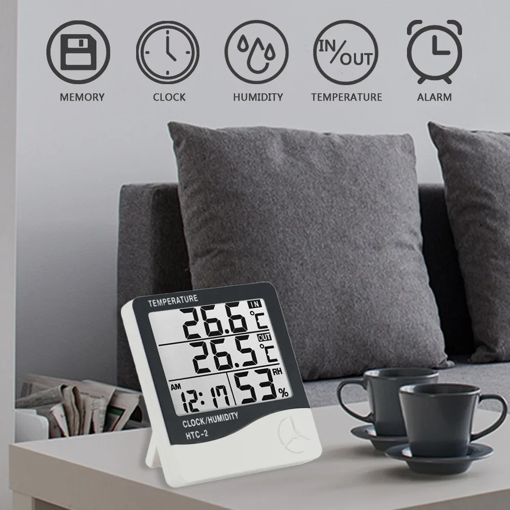 HTC-2 Метеостанция цифровая ЖК-дисплей Температура измеритель влажности в помещенииоткрытый комнатный термометр гигрометр, часы с датчиком