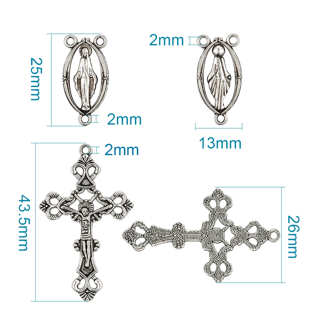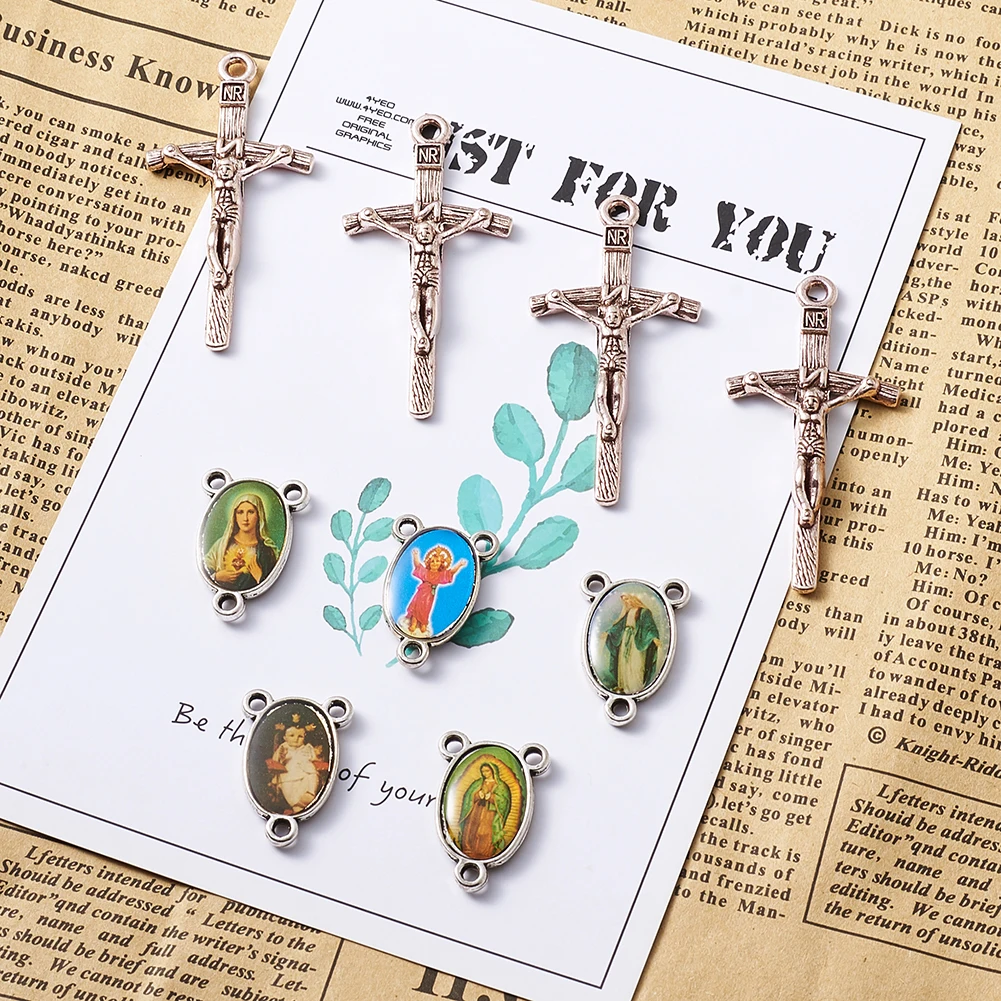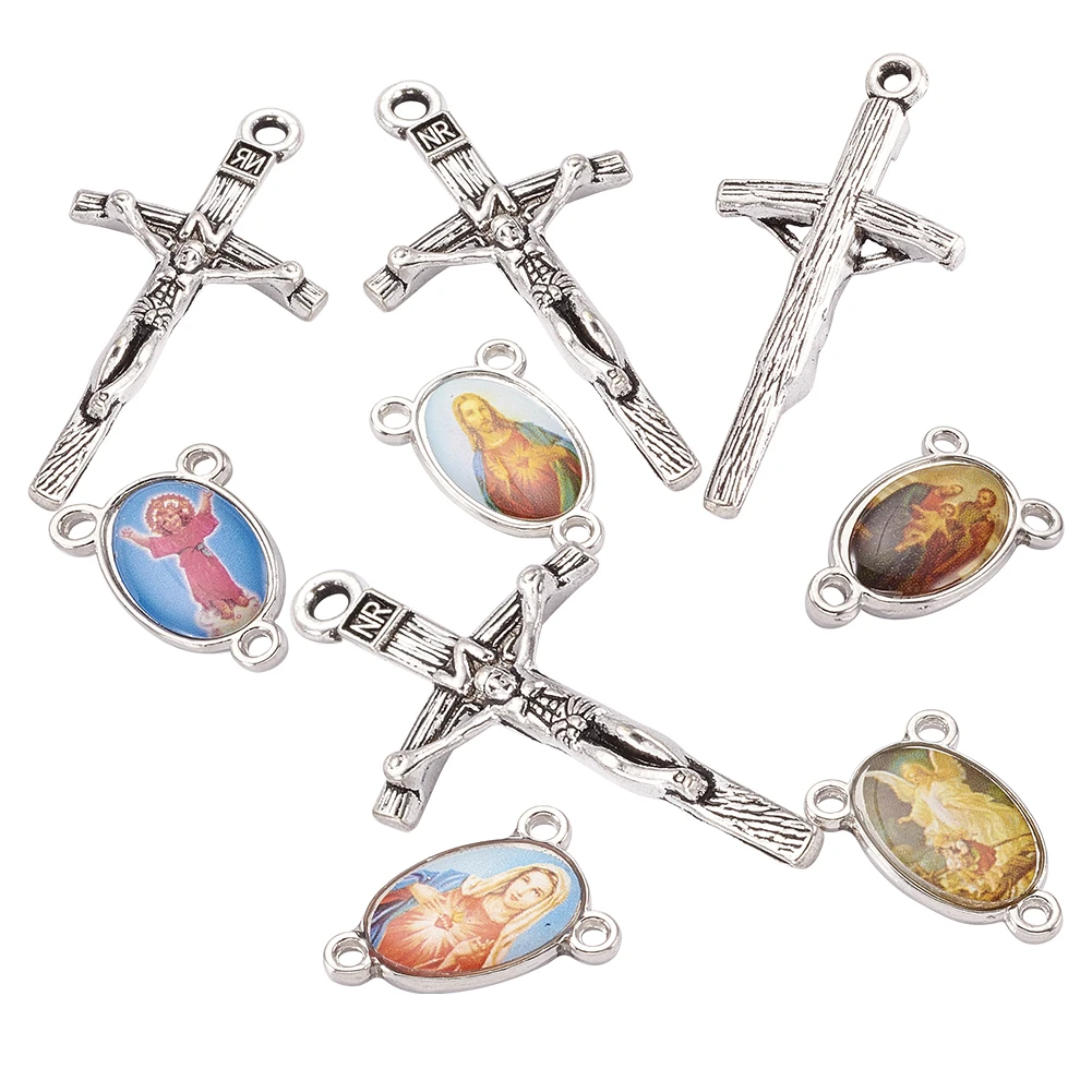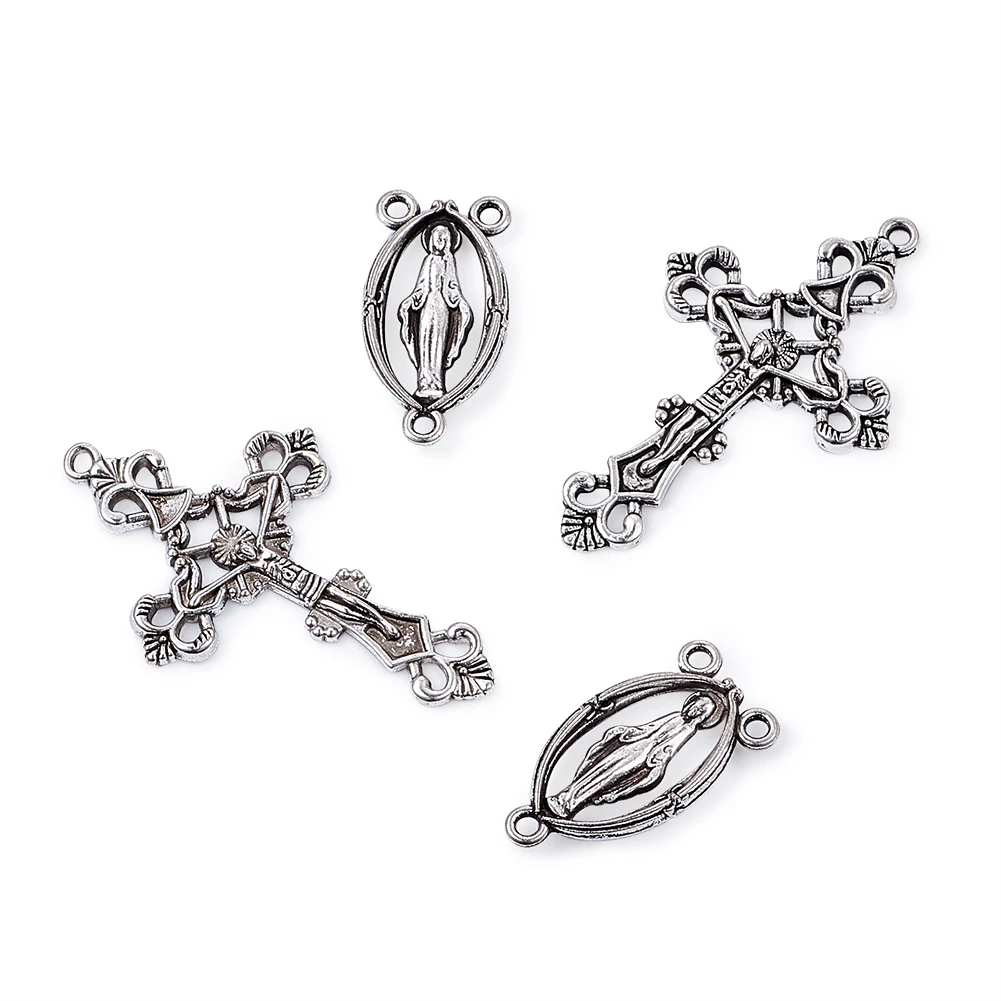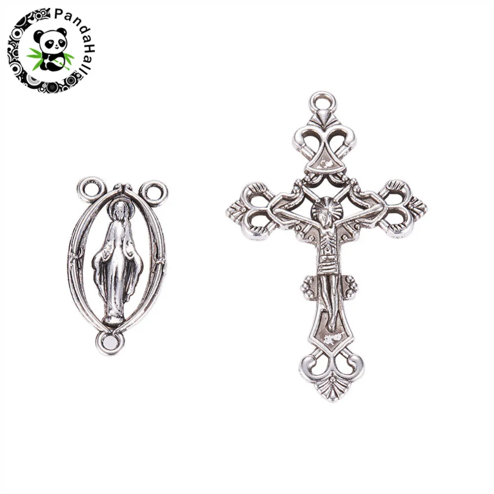 10 шт.набор, сплав античное серебро Цвет ожерелье распятие Подвеска Иисус крест браслеты с подвесками и четки оптом по низкой цене центр наборы для самостоятельного изготовления ювелирных изделий