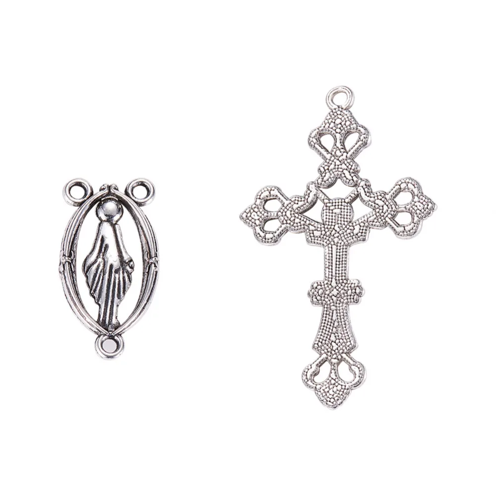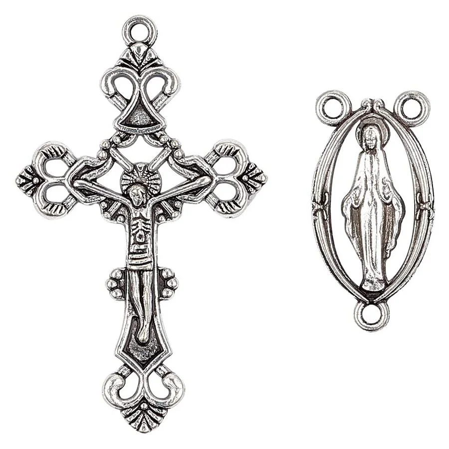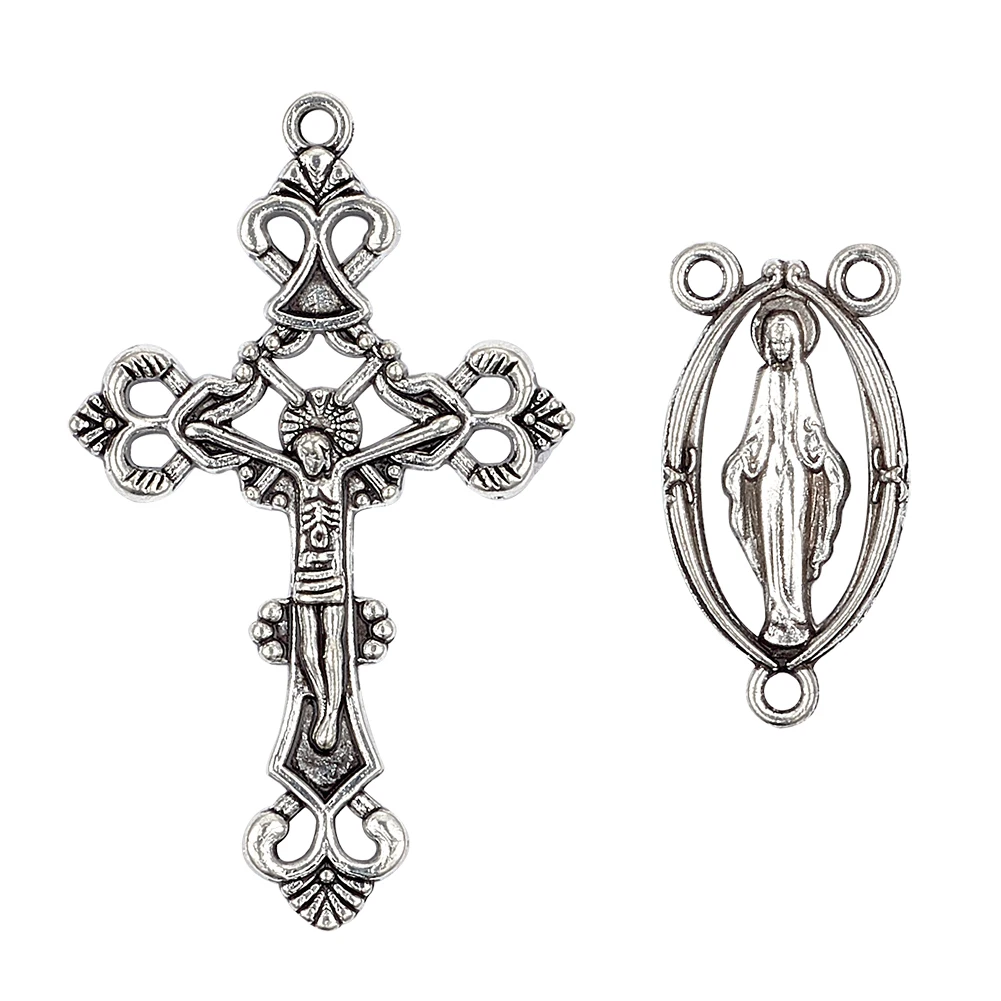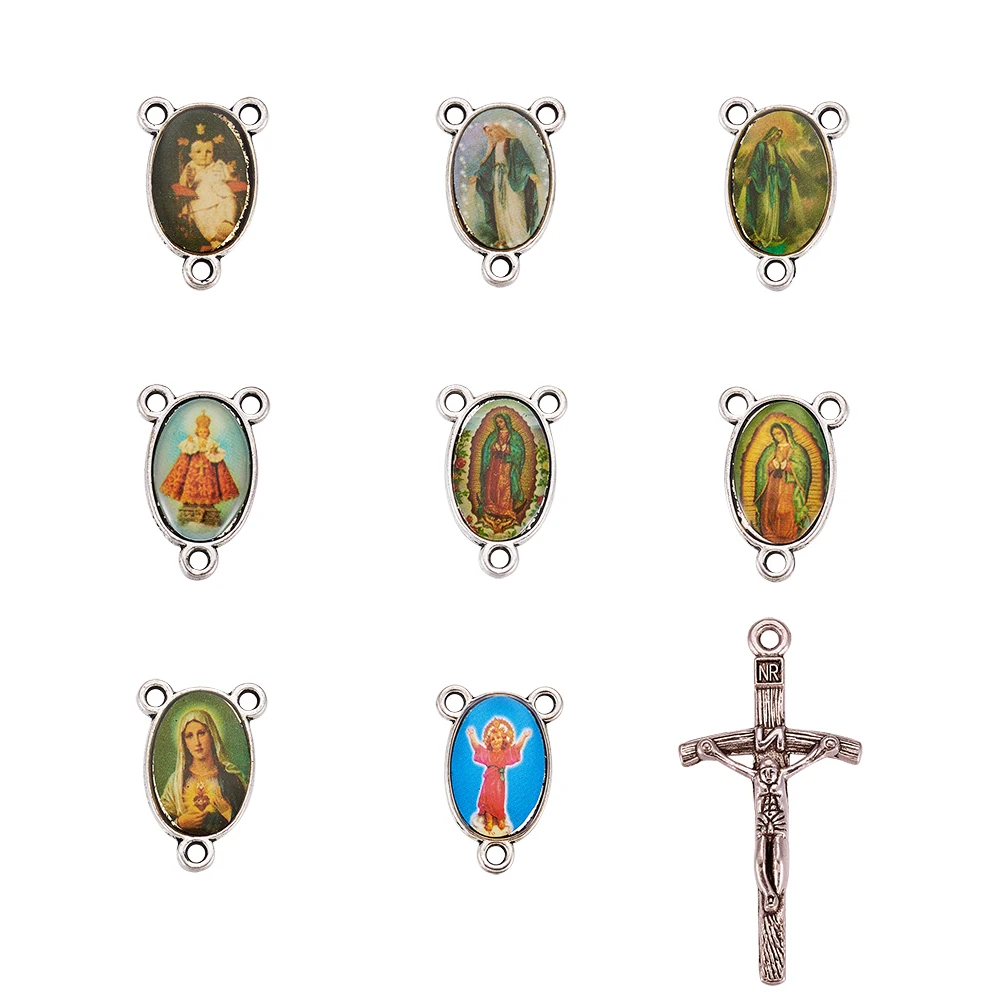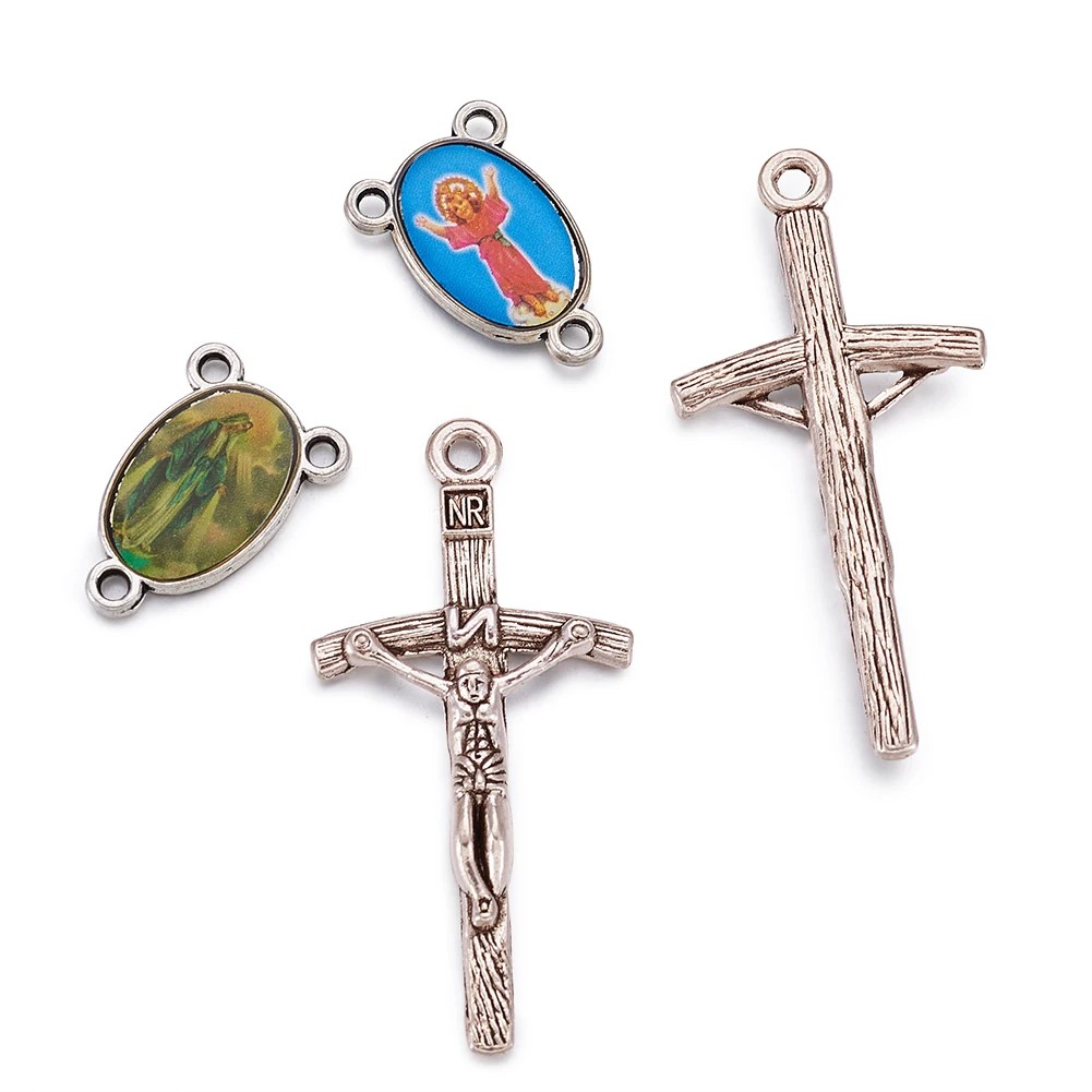 10 шт.набор, сплав античное серебро Цвет ожерелье распятие Подвеска Иисус крест браслеты с подвесками и четки оптом по низкой цене центр наборы для самостоятельного изготовления ювелирных изделий
