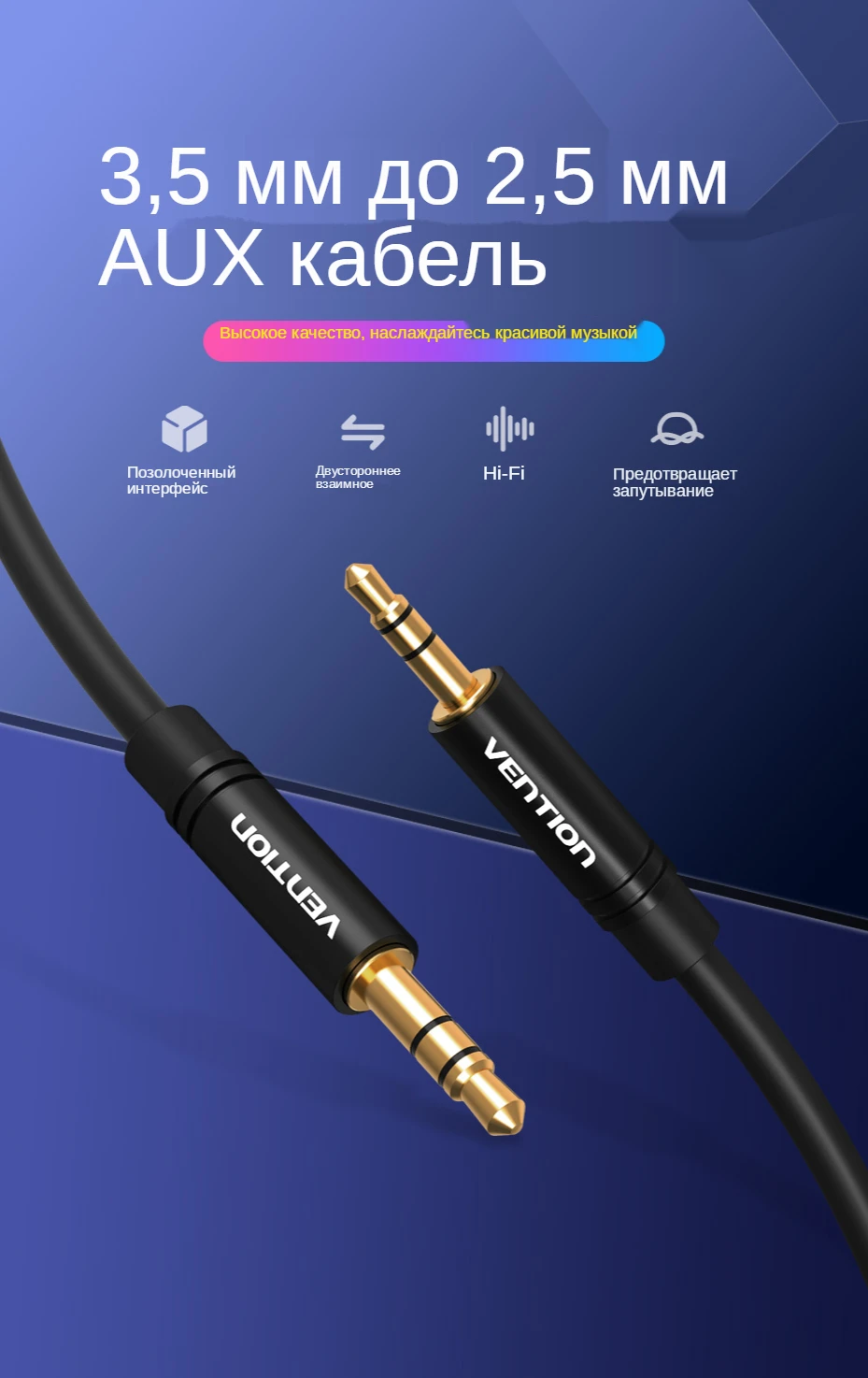 Vention кабель для внешнего сигнала 3,5 мм до 3,5 аудио кабель Jack 2,5 до динамик смартфона Мужской Aux кабель для автомобиля 2,5 наушников Moible Телефон