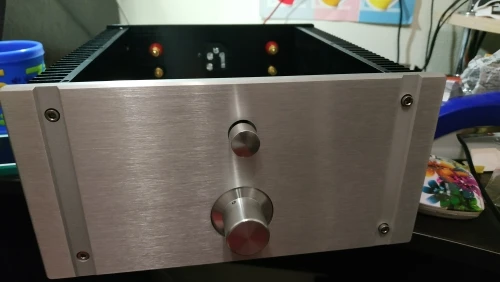 Очень не доволен, косяк на косяке, Задняя крышка не сходится по отверстиям, видать от другого корпуса. Верхняя крышка поцарапана, внешний вид считай испорчен. Для ножек нет отверстий для крепления. Кнопка включения сломалась после 10 нажатий, залипла и теперь всегда закорочена, хоть занажимайся. Нет фиксирующего винта для регулятора громкости, где его теперь брать? Из позитивного, этого корпуса хватает для усилителя JLH