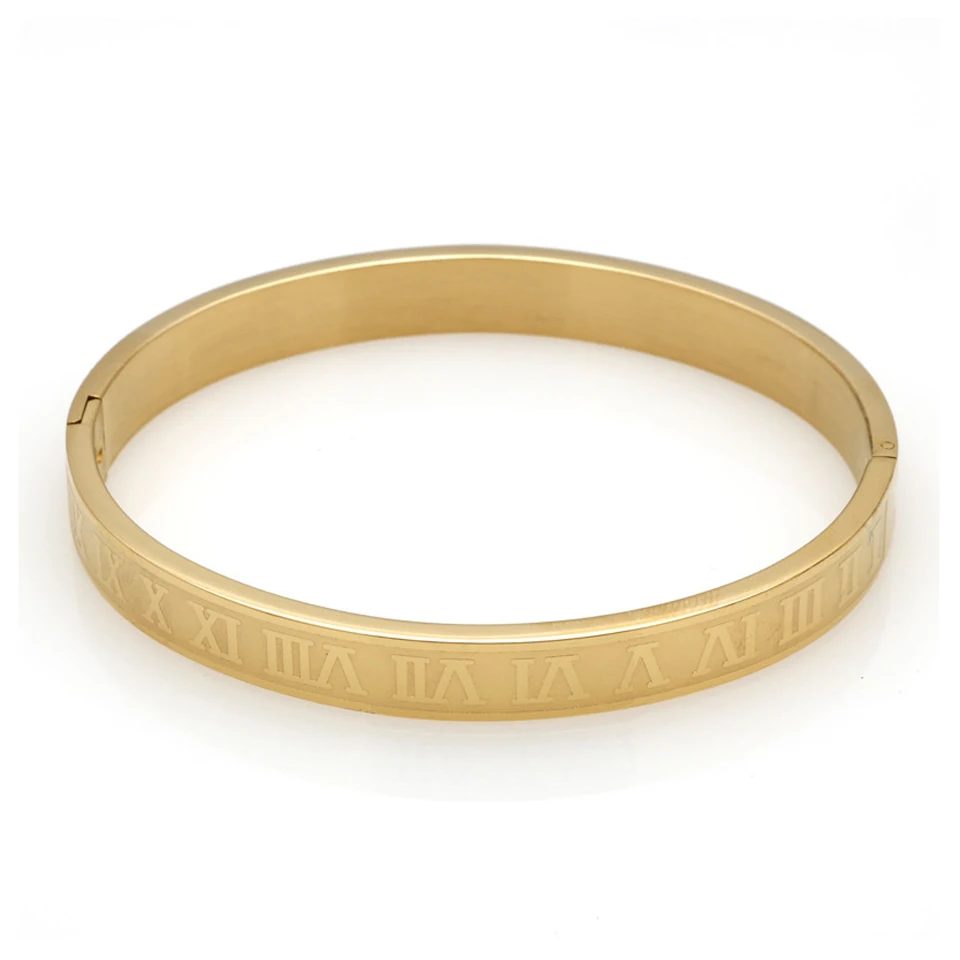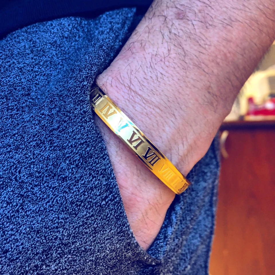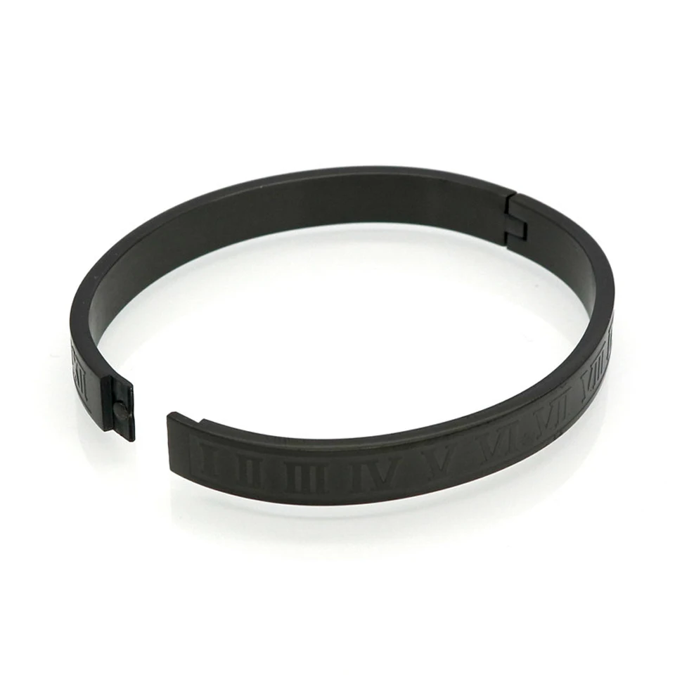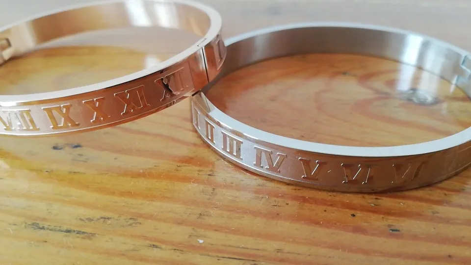 Браслет-манжета с римскими цифрами для мужчин и женщин, Ювелирное Украшение на запястье из нержавеющей стали, цвет розовое золото, браслет для пары с резьбой, свадебная бижутерия