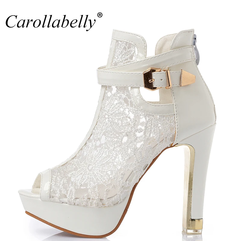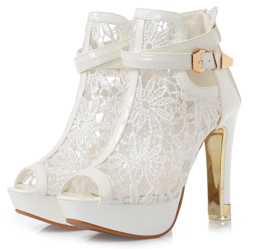 Женские кружевные туфли-лодочки на платформе, белые сетчатые черные туфли на высоком каблуке с открытым носком, 2021