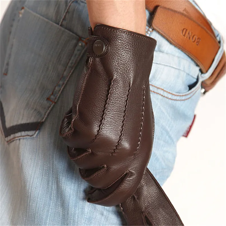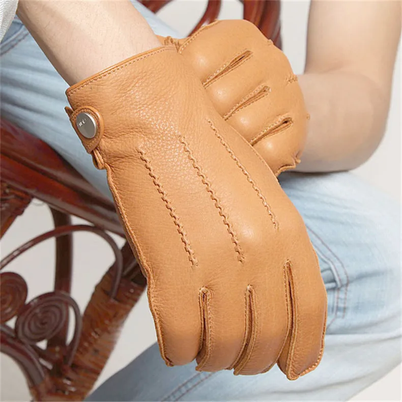 Перчатки мужские зимние из оленьей кожи, с пуговицами на запястье, Em012wr