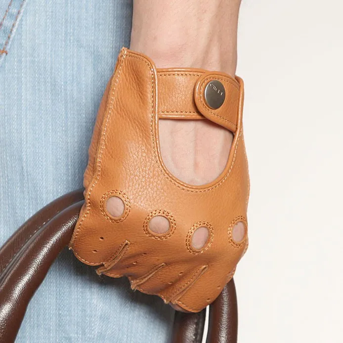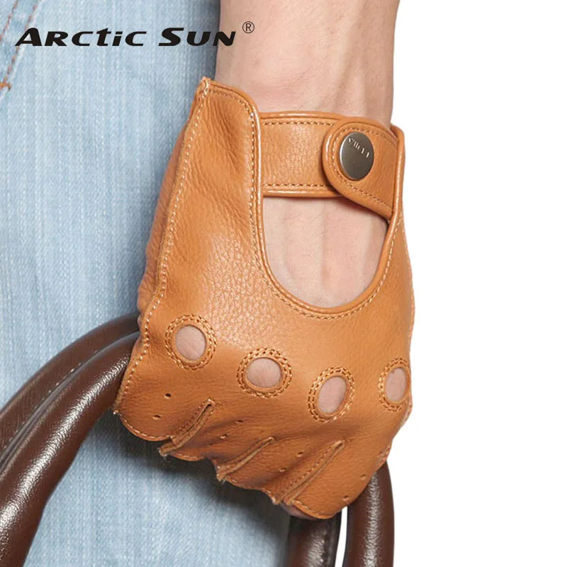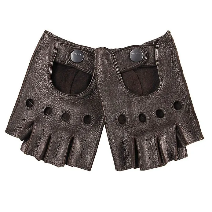 Для мужчин Натуральная кожа на полпальца перчатки с полуоткрытыми пальцами, дышащие мужские перчатка из оленьей кожи наручные кнопки вождения EM001W