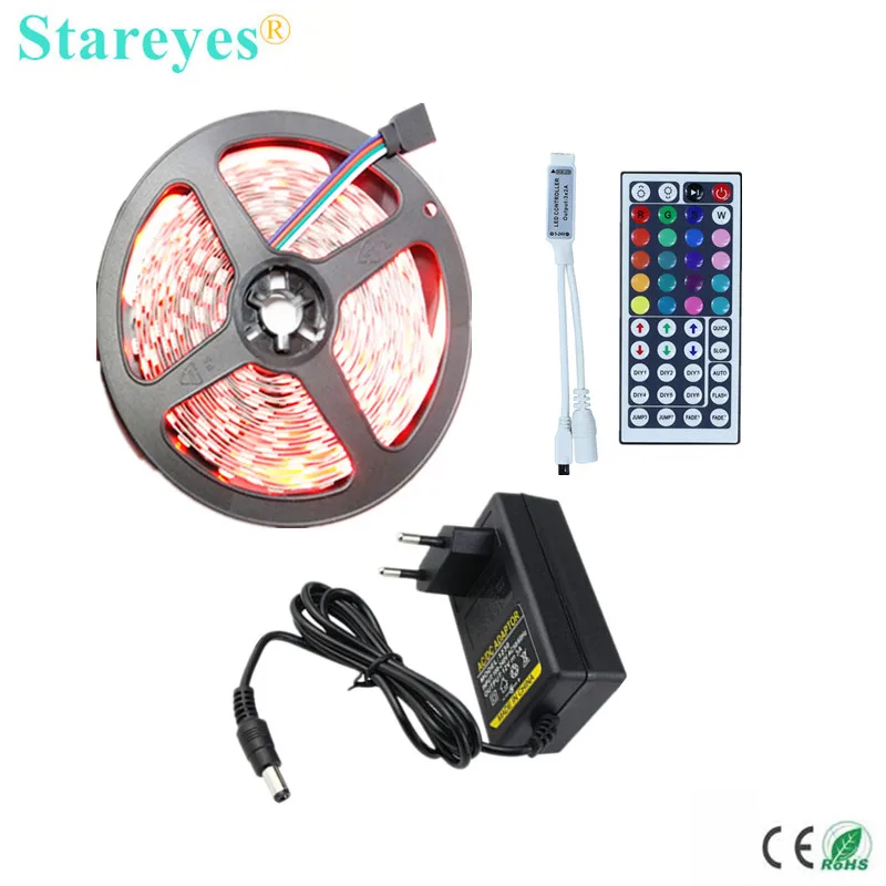 1 компл. 5 м 300 светодиодный SMD 5050 RGB светодиодный ная лента DC12V лента не водонепроницаемая полоса фонарик освещение с ИК-пультом + адаптер питания 3A