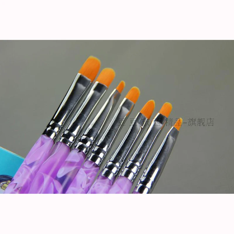 Набор кистей для дизайна ногтей, 7 шт.лот, УФ-Гель-лак для рисования, ручка для рисования, акриловая ручка, плоские Кисти, инструменты для маникюра