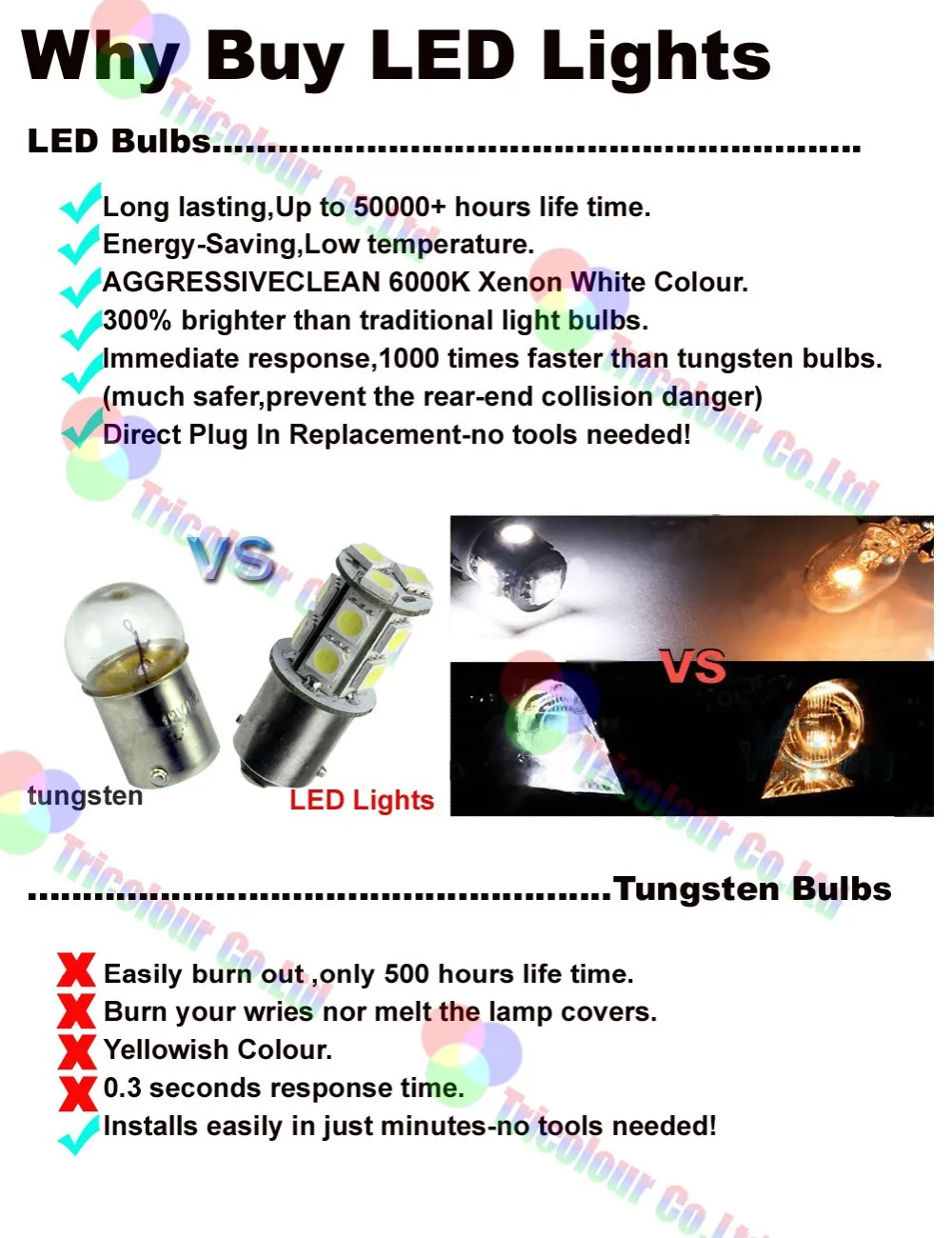 1. Бесплатное техническое обслуживание, простая установка;2. Ударопрочный (ударопрочный/Вибрационный.3. Встроенные ограничительные резисторы тока;4. Длительный срок службы. Теоретические данные более 100 000 часов.5. Предназначен для работы в отрицательных транспортных средствах;6. Низкое энергопотребление; Экономия энергии и защита окружающей среды. Светодиодный индикатор энергии составляет 1/10 от традиционной галогенной лампы, она лучше защищает электрон и экономит масло.7. Высокая интенсивность;8. Экологическая этикетка, Большая экономия энергии;9. Основное снижение, производство тепла;10однолетняя гарантия на лампу.11. Высокая устойчивость к ударам; Яркий светильник; Низкая температура.12. Супер белое освещение обеспечивает высокий уровень безопасности дорожного движения при ночном вождении.13. Быстрая активная работа;14. Чистый цвет с приятным внешним видом.