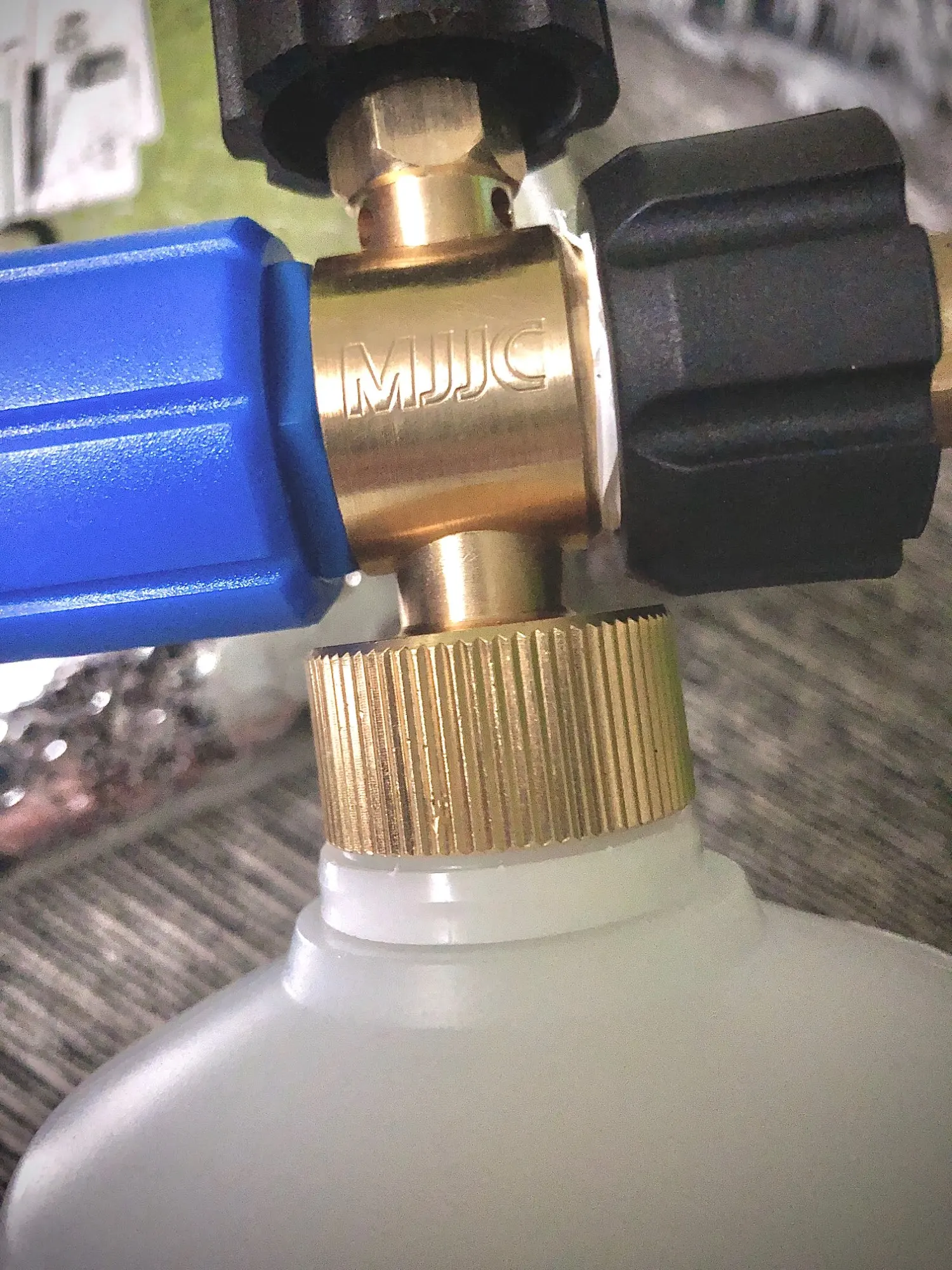 Доставили очень быстро. Фирменная коробка MJJC , на бутылке надпись нанесена краской. Сам распылитель с гравировкой MJJC. Еще в комплекте жеклер, трубка с пробкой для бутылки, переходник именно к моей мойки, две металические сеточки и одна поролоновая. Также памятка.