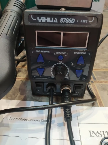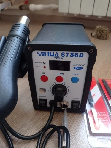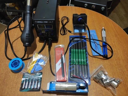 Очень хороший паяльник. Очень прост в использовании, не совсем лучшее качество наконечников, но достаточно хорош для всех видов паяльной работы. Вложения завершены, и все, что вам нужно, начать с набором. Продавец использует почту Китая, поэтому вам придется платить пошлины и налоги. Пистолет потока и циферблат воздушного потока очень гладкие. Очень быстро становится жарко.