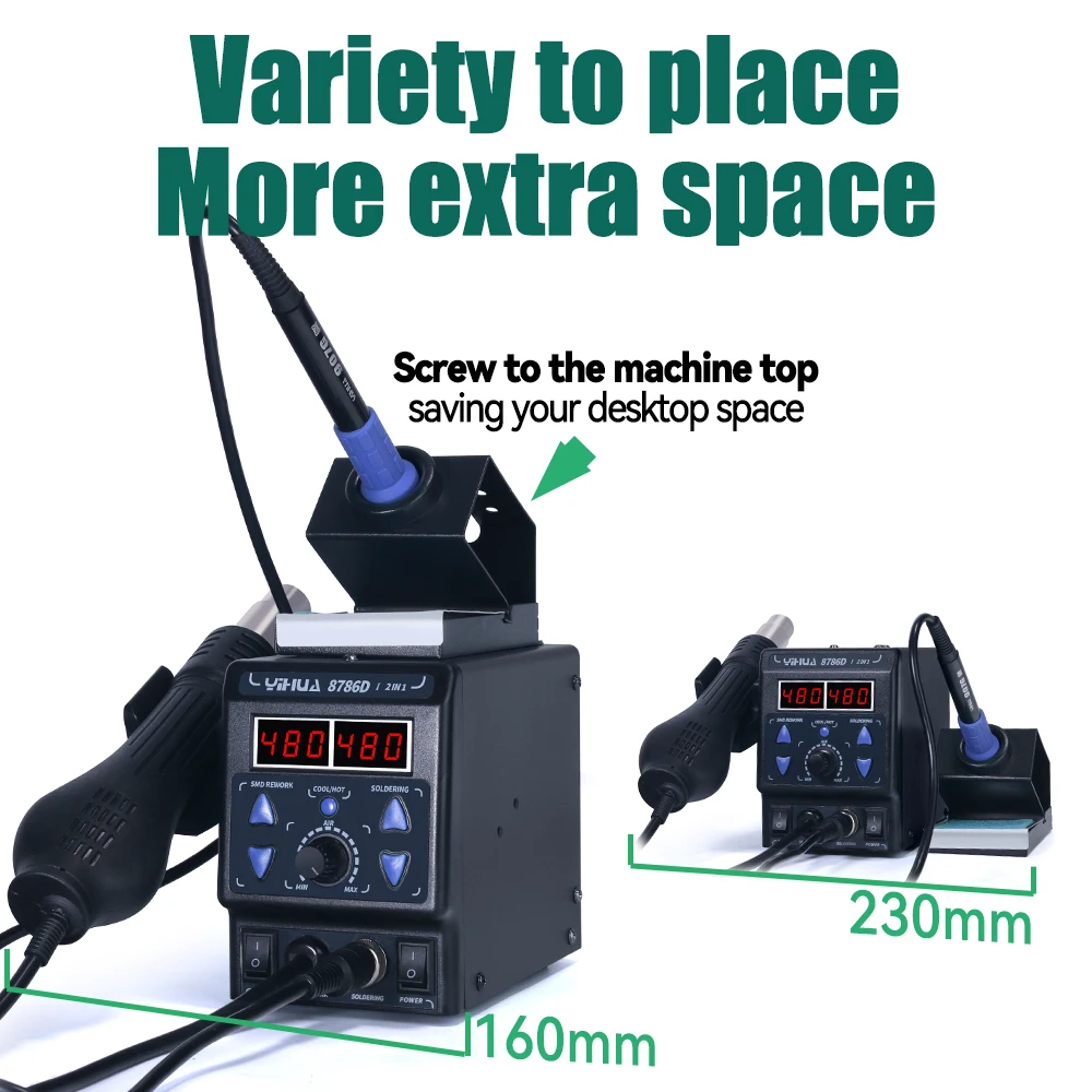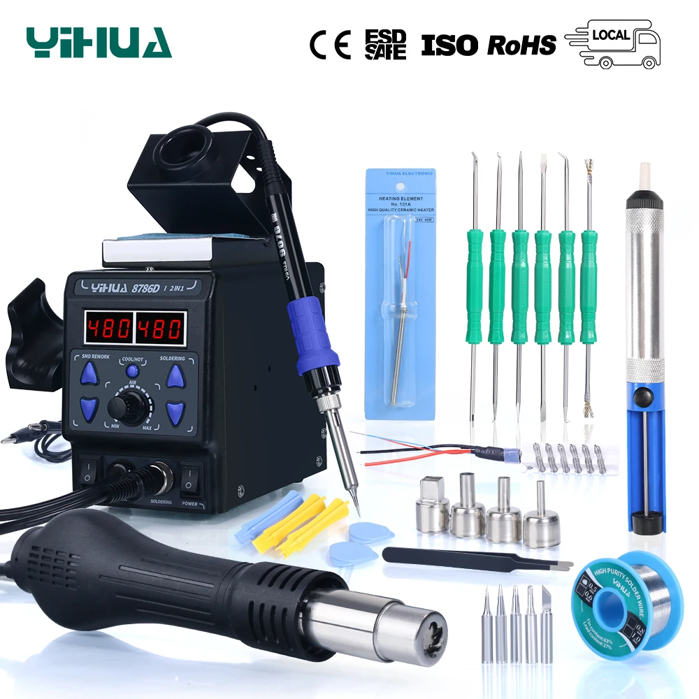Паяльник YIHUA 8786D, цифровая паяльная станция с горячим воздухом для ремонта телефонов и микросхем