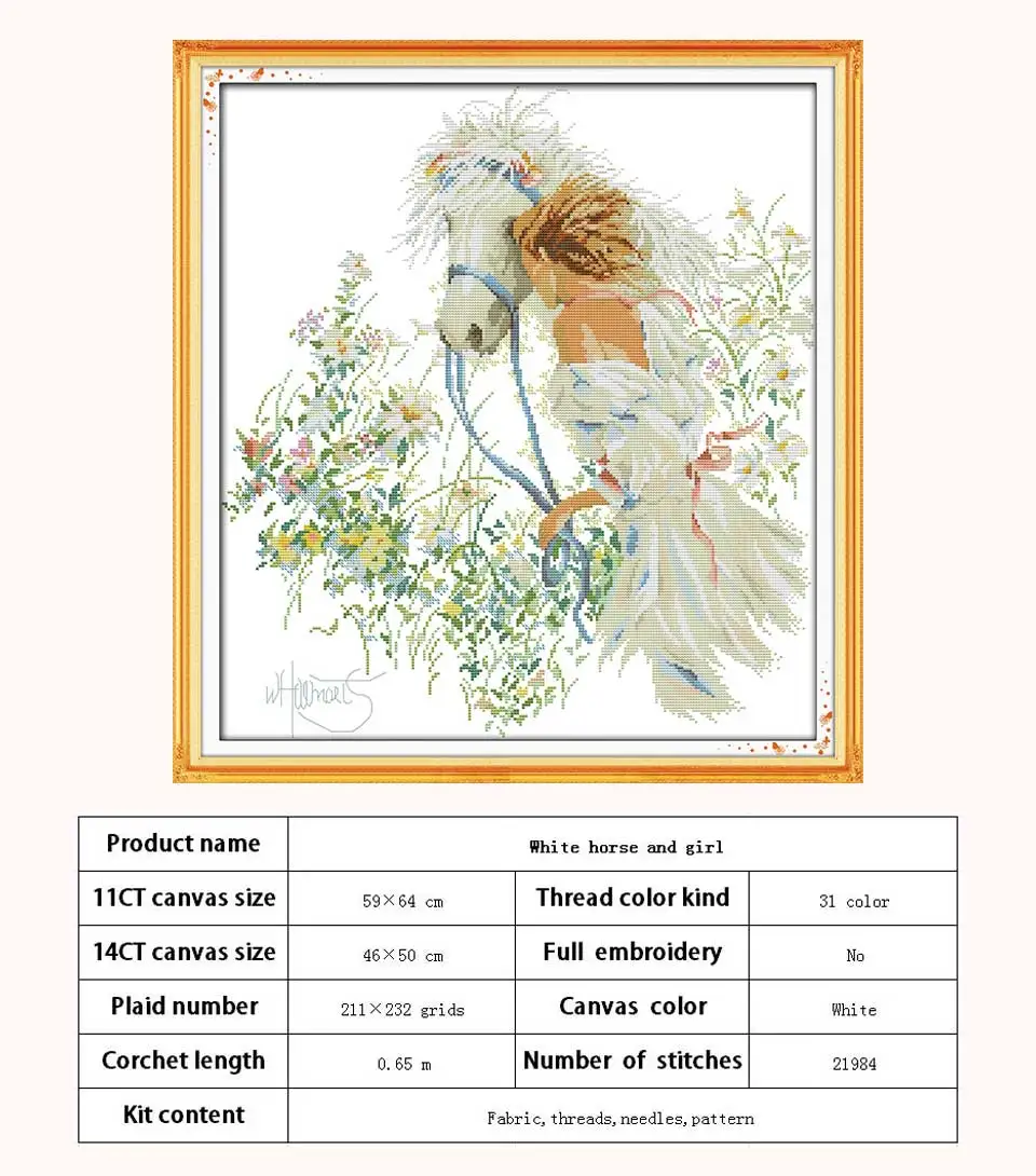 Набор для вышивки Белая лошадь и девочка, Набор для вышивки крестиком 11CT с принтом 14CT, для домашнего декора