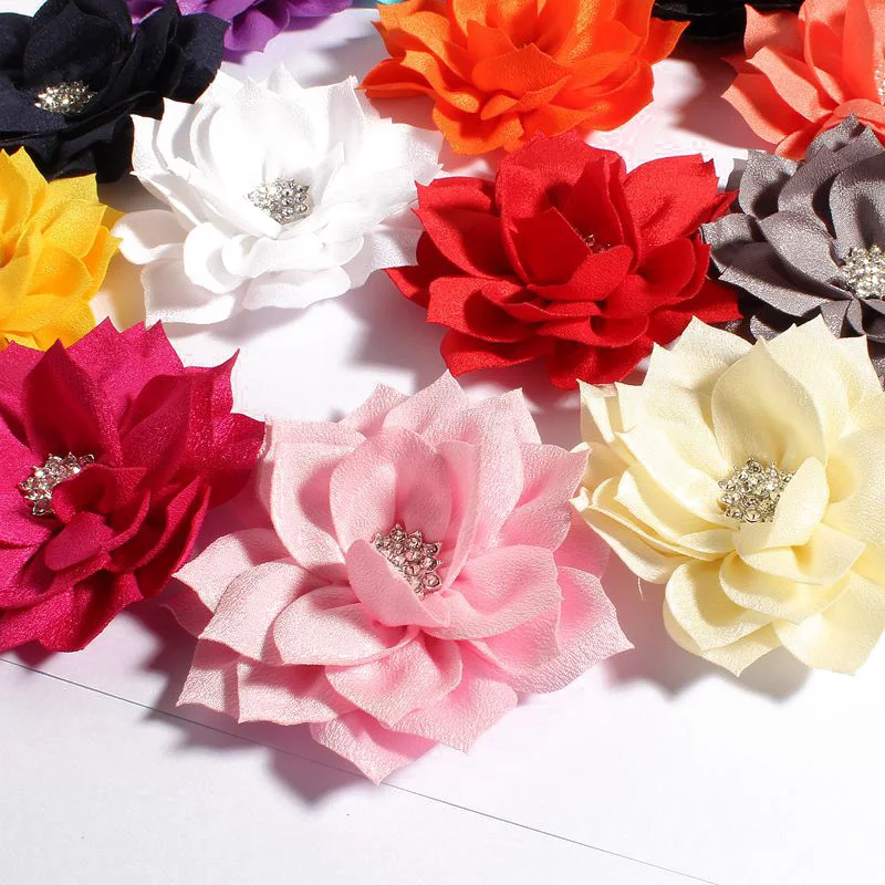 (5 шт.лот) 3,6 "9 цветов, модная ткань, атласный цветок для детей, искусственный жемчуг, сплав, пуговицы, цветок, аксессуары для повязок