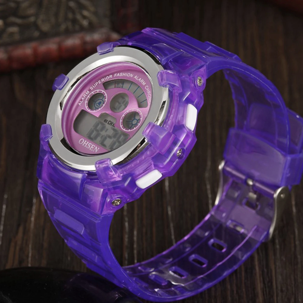 Водонепроницаемые детские цифровые часы, фиолетовые силиконовые модные милые Светодиодные детские наручные часы для девочек, электронные спортивные часы для мальчиков и девочек на открытом воздухе