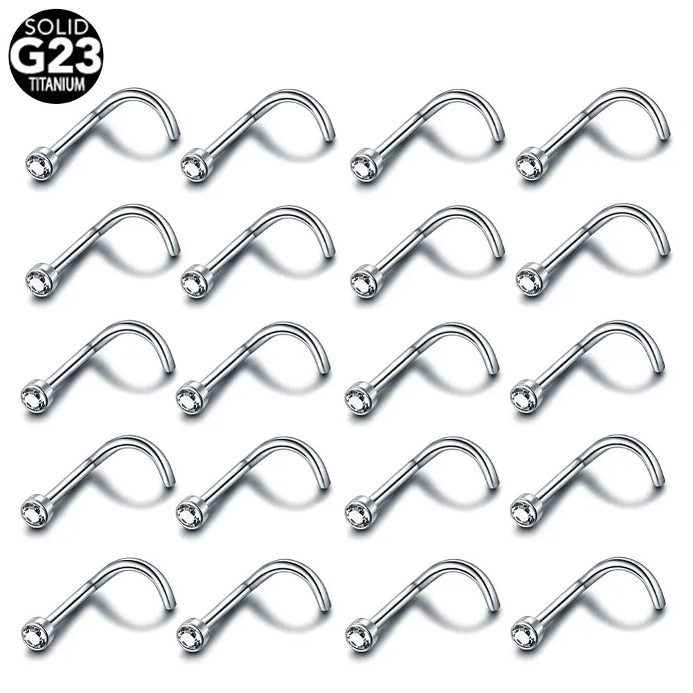 Гвоздик для пирсинга носа из титана G23, с плоским кристаллом, 20 г, ювелирные изделия для тела, серьги-гвоздики для носа, ювелирные изделия для носа, 20 шт.