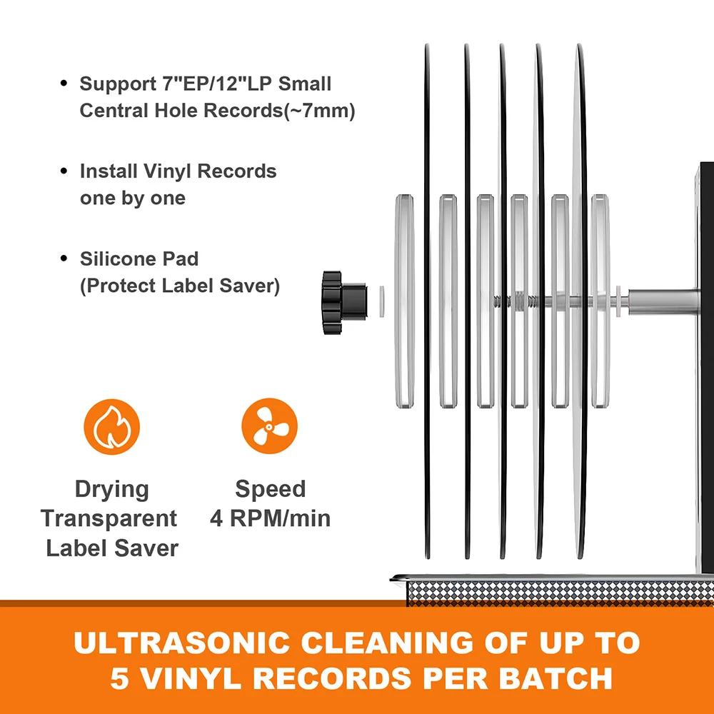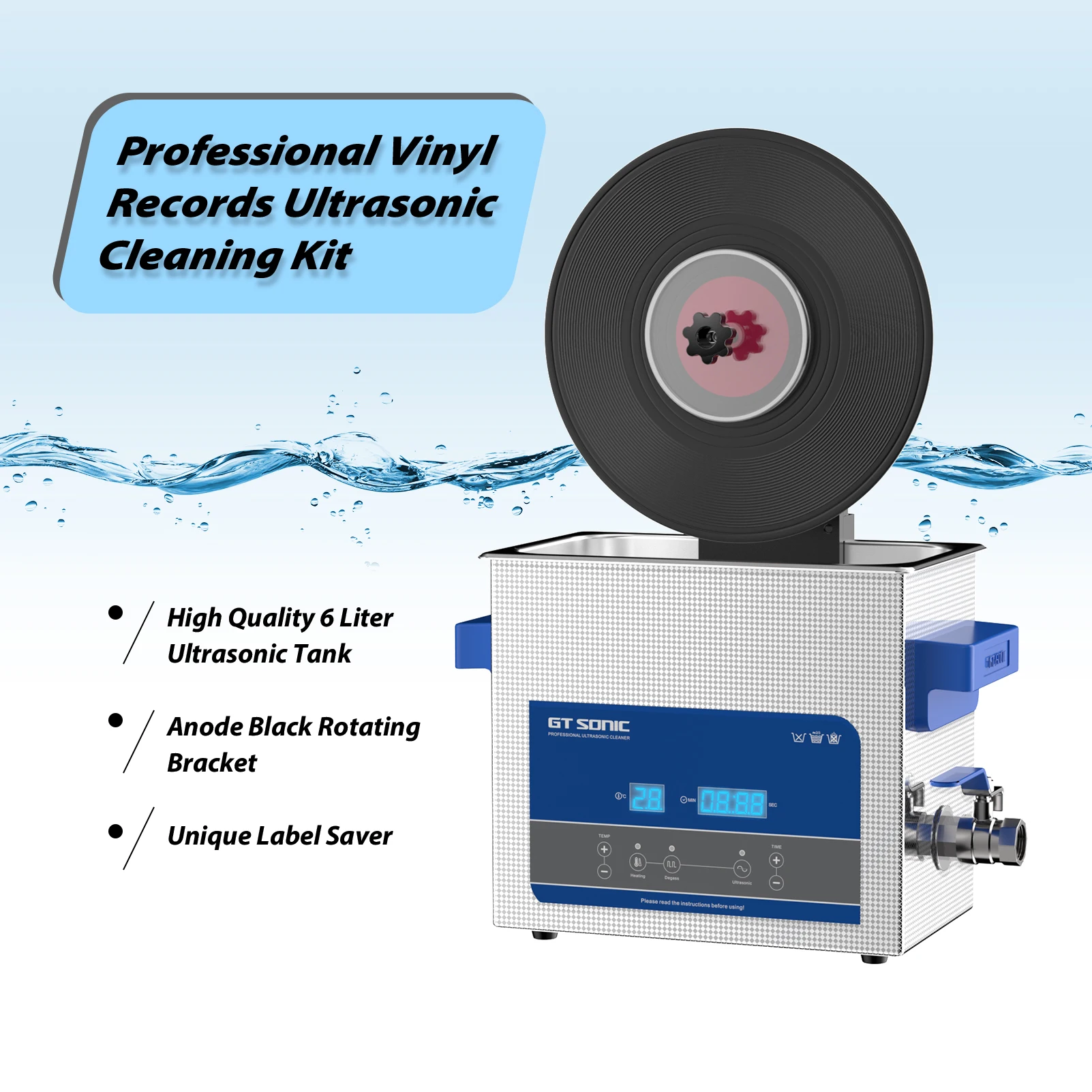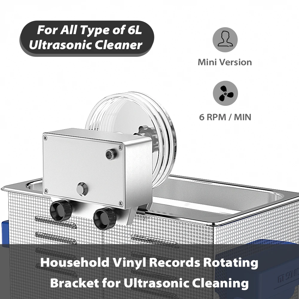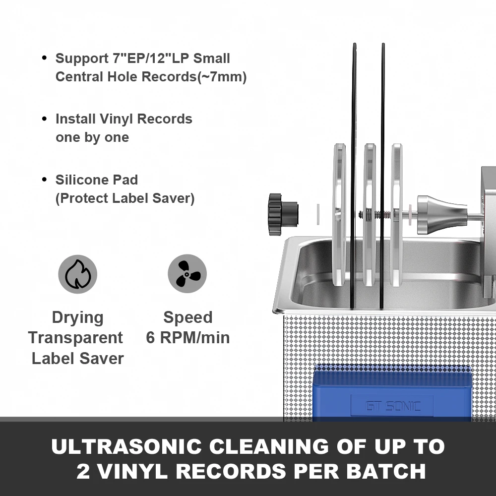 Ультразвуковой очиститель виниловых пластинок GTSONIC 6 л с кронштейном для очистки дисков 12 дюймов, LP, 7 дюймов, EP