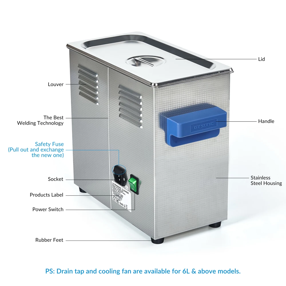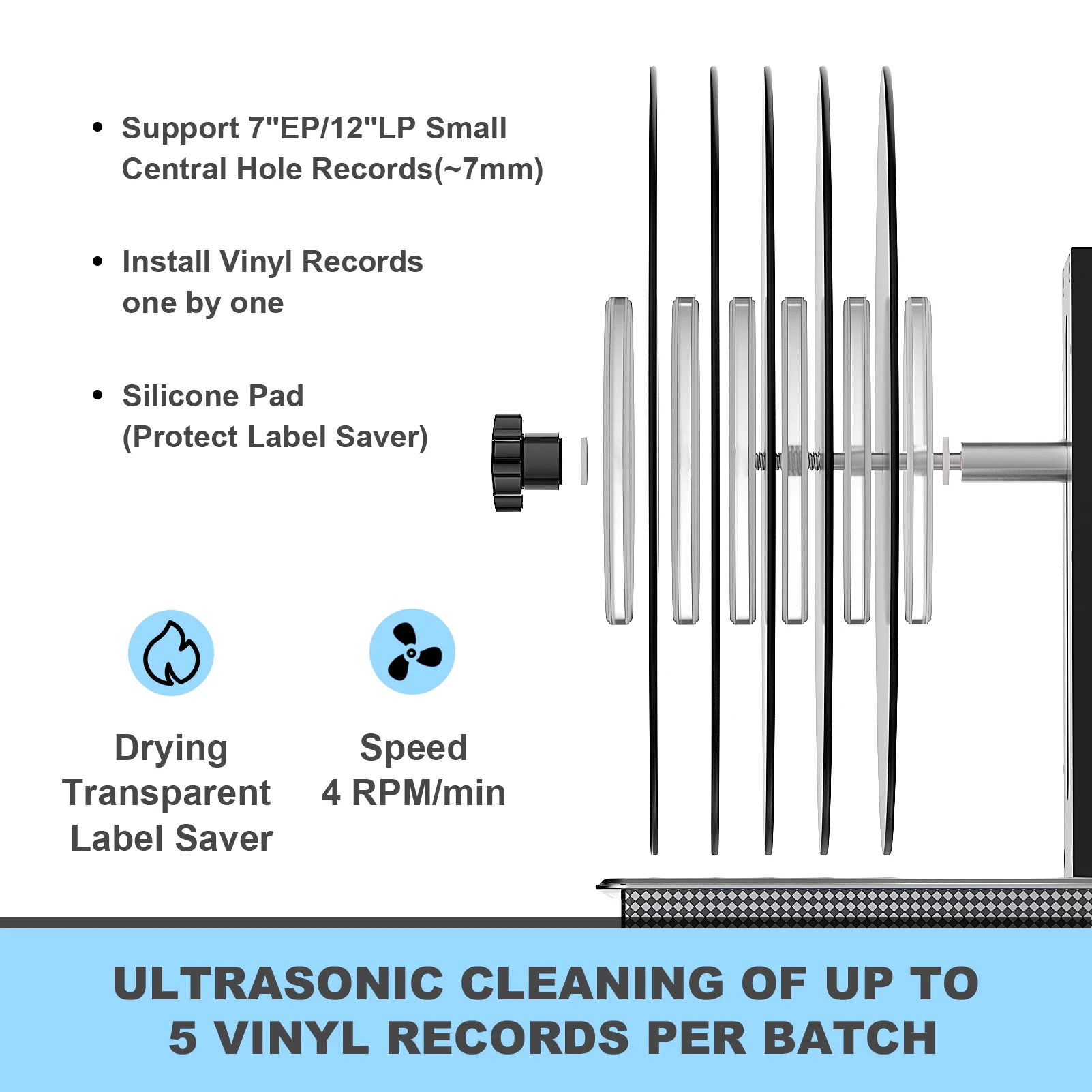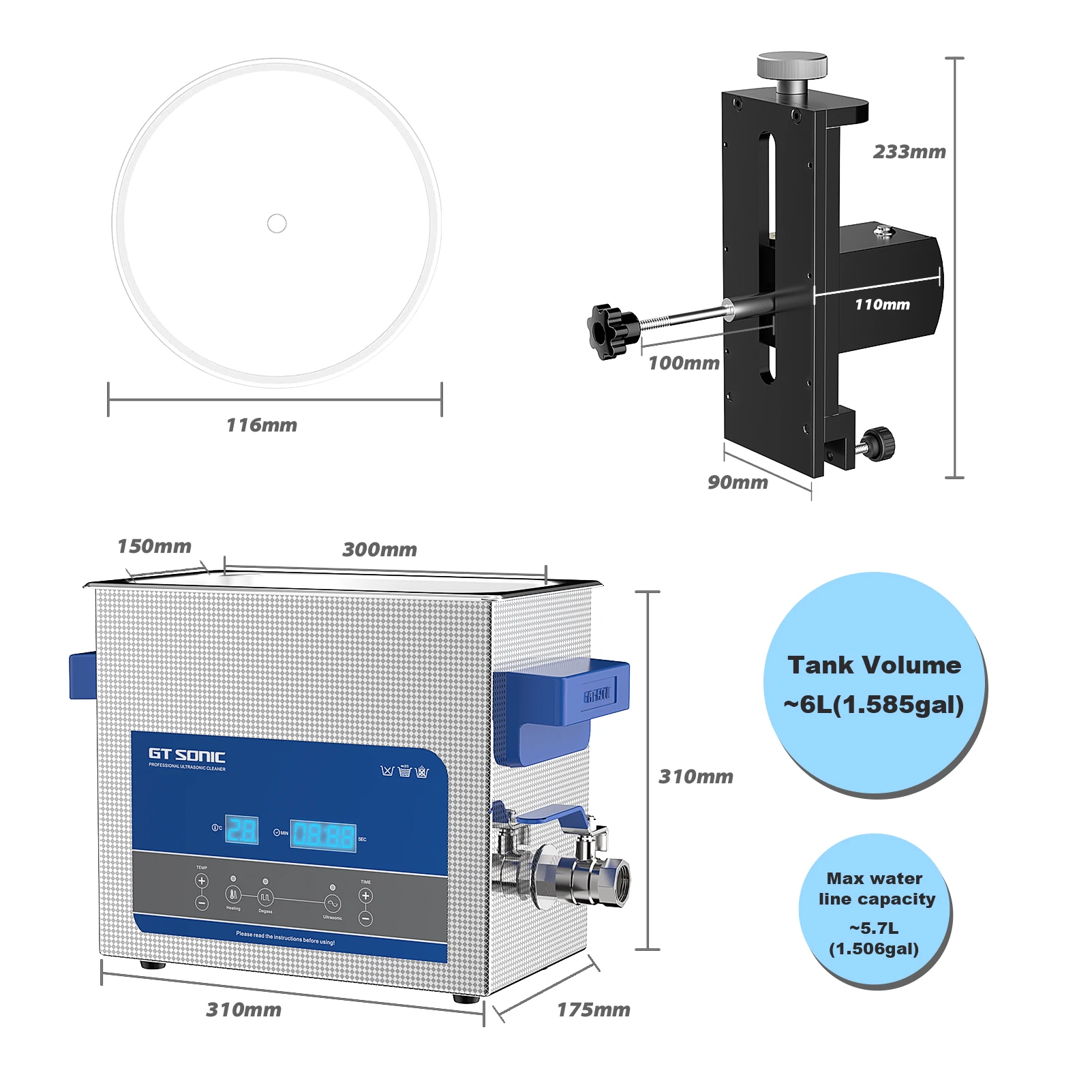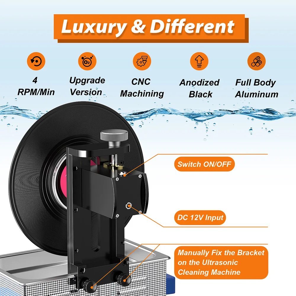 Ультразвуковой очиститель виниловых пластинок GTSONIC 6 л с кронштейном для очистки дисков 12 дюймов, LP, 7 дюймов, EP