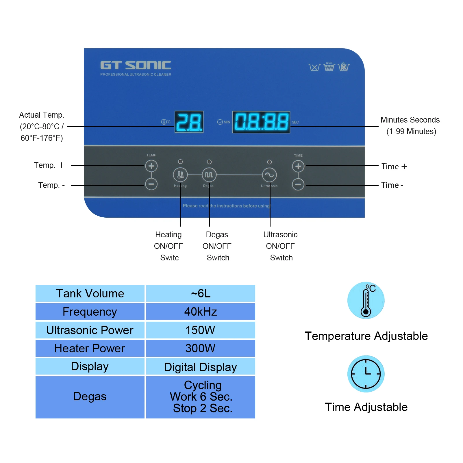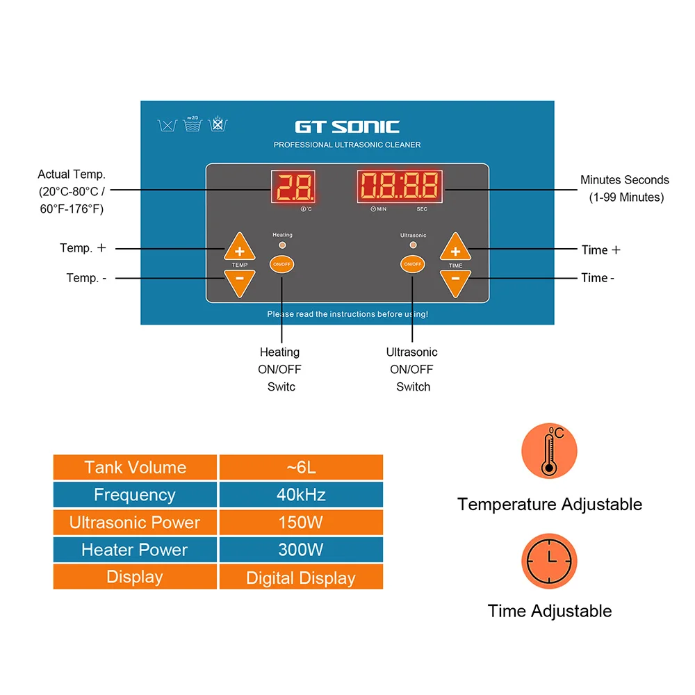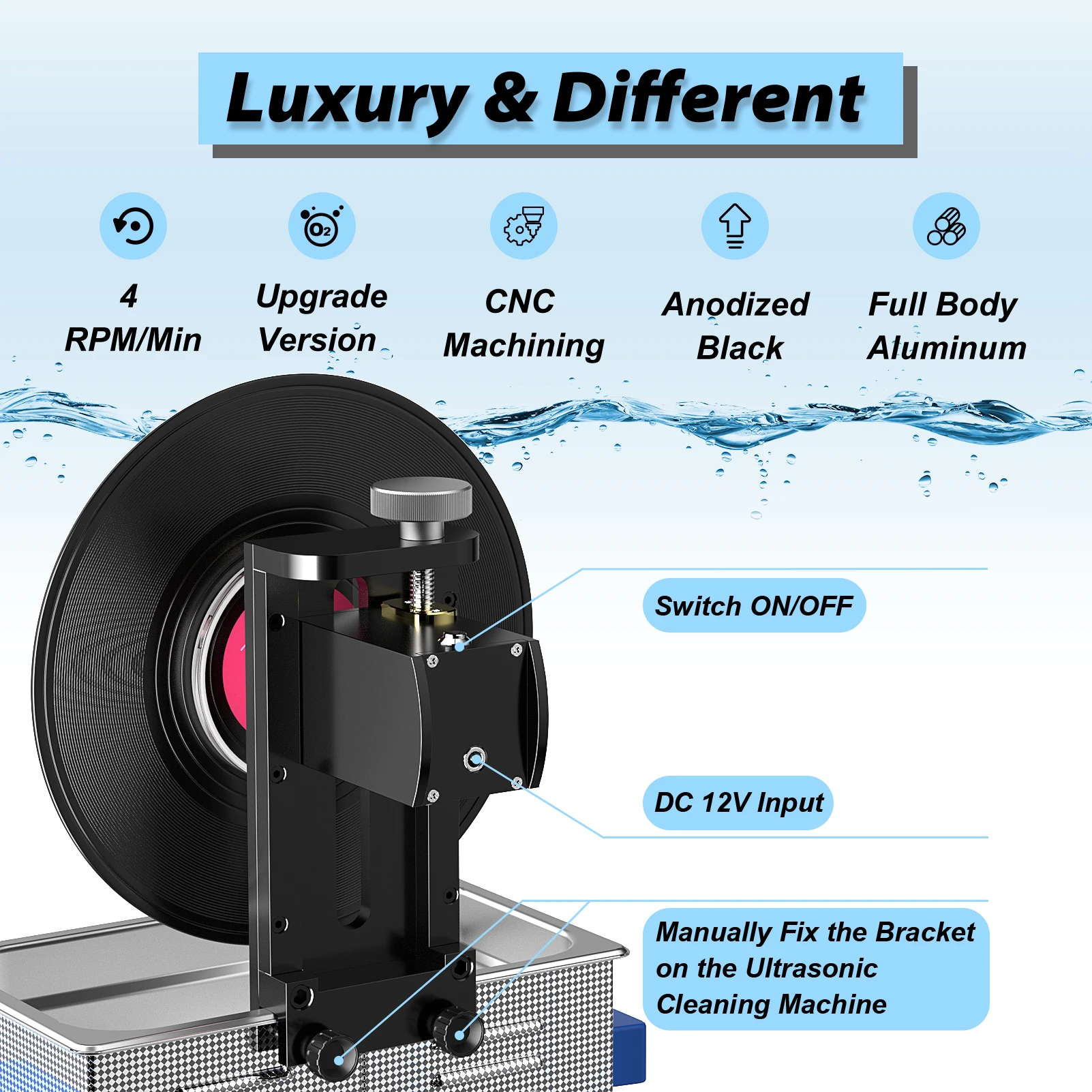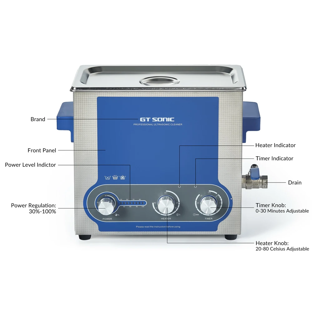 Ультразвуковой очиститель виниловых пластинок GTSONIC 6 л с кронштейном для очистки дисков 12 дюймов, LP, 7 дюймов, EP