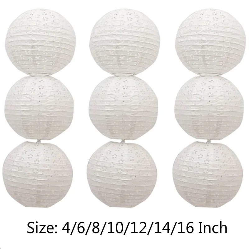 Праздничные поставки белых пустотелых китайских бумажных фонарей 4-6-8-10-12-14-16 дюймов для вечевечерние и Свадебное Украшение подвесное бумажный шар