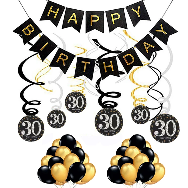 Украшение на день рождения, Черное золото, 1, 18, 30, 40, 50, 60, 70, баннер на день рождения, воздушные шары, принадлежности, украшение на 1-й день рождения