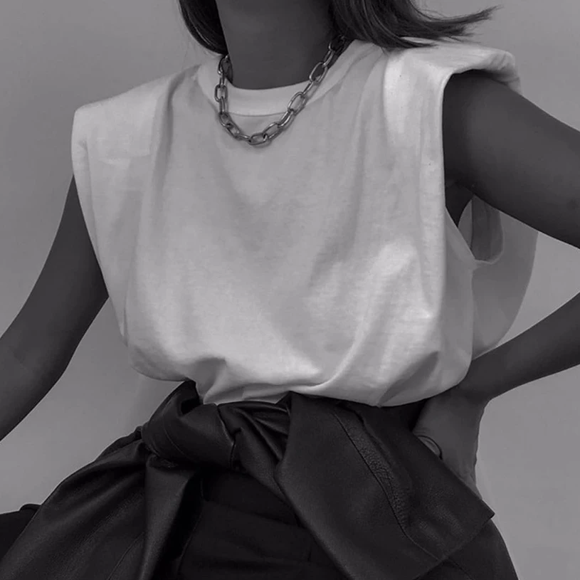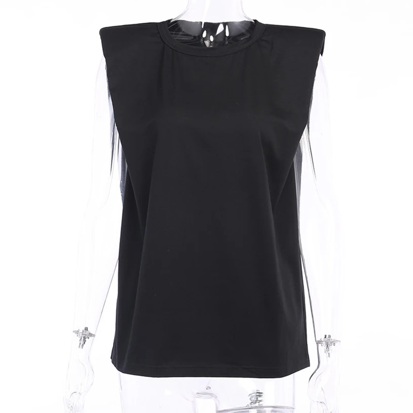 Модная элегантная свободная футболка без рукавов с наплечниками, стильный топ на лето и осень, облегающая женская Веерная Базовая куртка