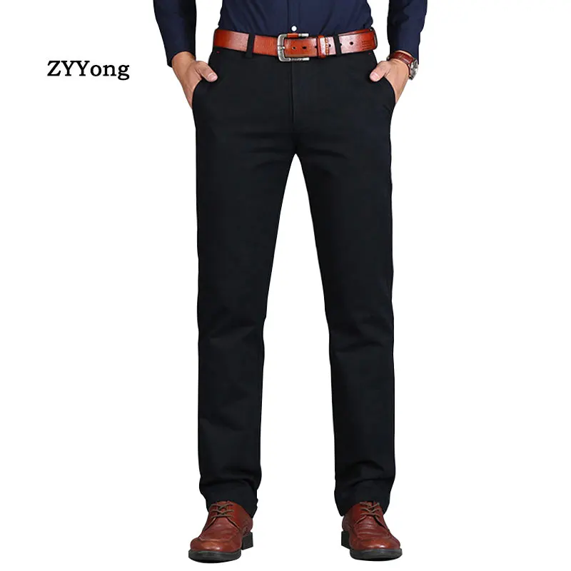 ZYYong новые мужские брюки прямые свободные повседневные брюки большой размер хлопок модный мужской деловой костюм брюки зеленый коричневый серый хаки