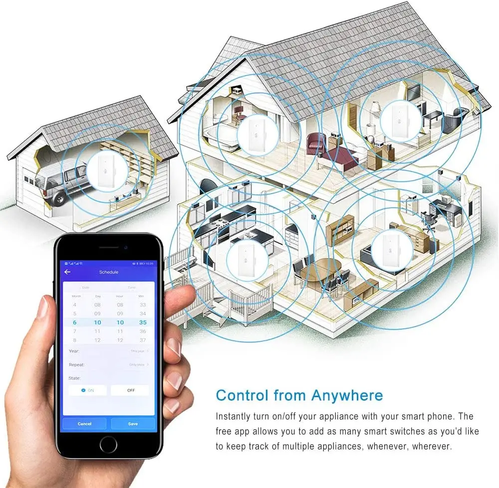 Управление приложением: вы можете использовать приложение «Ewelink» в вашем смартфоне для управления беспроводным переключателем котла с помощью Wi-Fi или сети 4G, не требуется концентратор, вы можете включить водонагреватель заранее, а затем насладиться горячим ливнем, когда прибудете. Функция таймера и расписания: Возьмите полный контроль над водой, вы можете спланировать точное время, чтобы автоматически включить/выключить устройства водонагревателя. Все члены семьи могли бы контролировать: этот умный котельный переключатель может иметь несколько участков управления, которыми делятся различные члены семьи. Один мобильный телефон также может управлять многими переключателями. Пульт дистанционного управления: мгновенно Включите/Выключите устройство с помощью смартфона. Бесплатное приложение позволяет добавлять столько смарт-переключателей, сколько вы хотите отслеживать несколько устройств. Широкая совместимость: коммутатор может быть совместим с мобильными системами iOS ans Android, работает с Amazon Alexa/Echo, Google Home.
