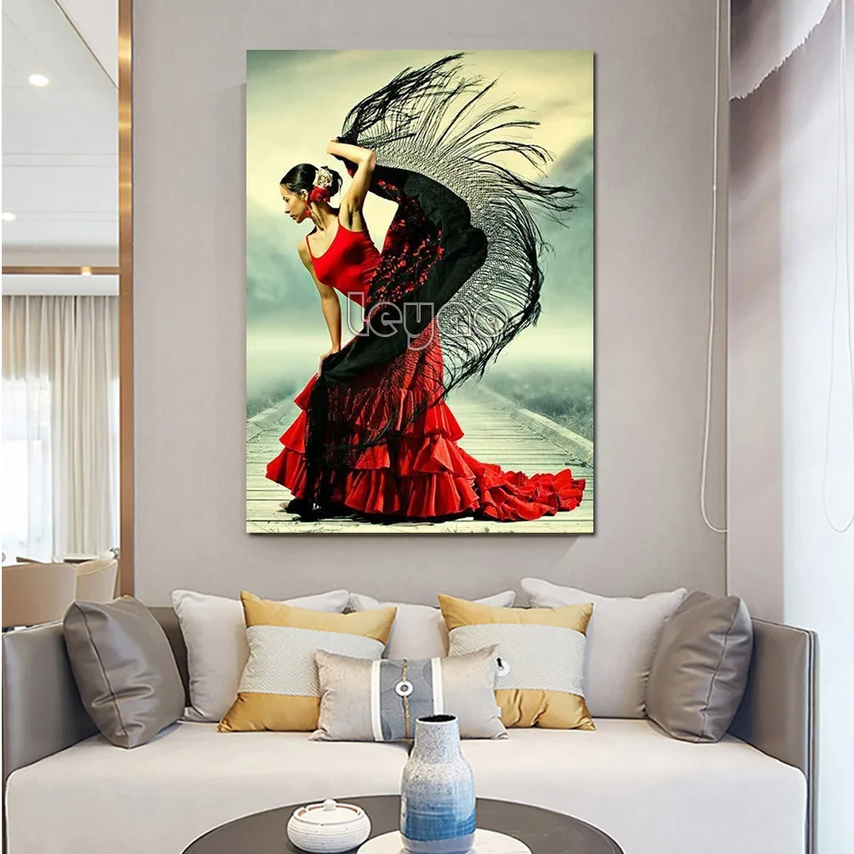 5d алмазная живопись портрет Красного платья танцовщицы полный набор для алмазной вышивки с квадратными круглыми камнями Алмазная мозаика домашний декор