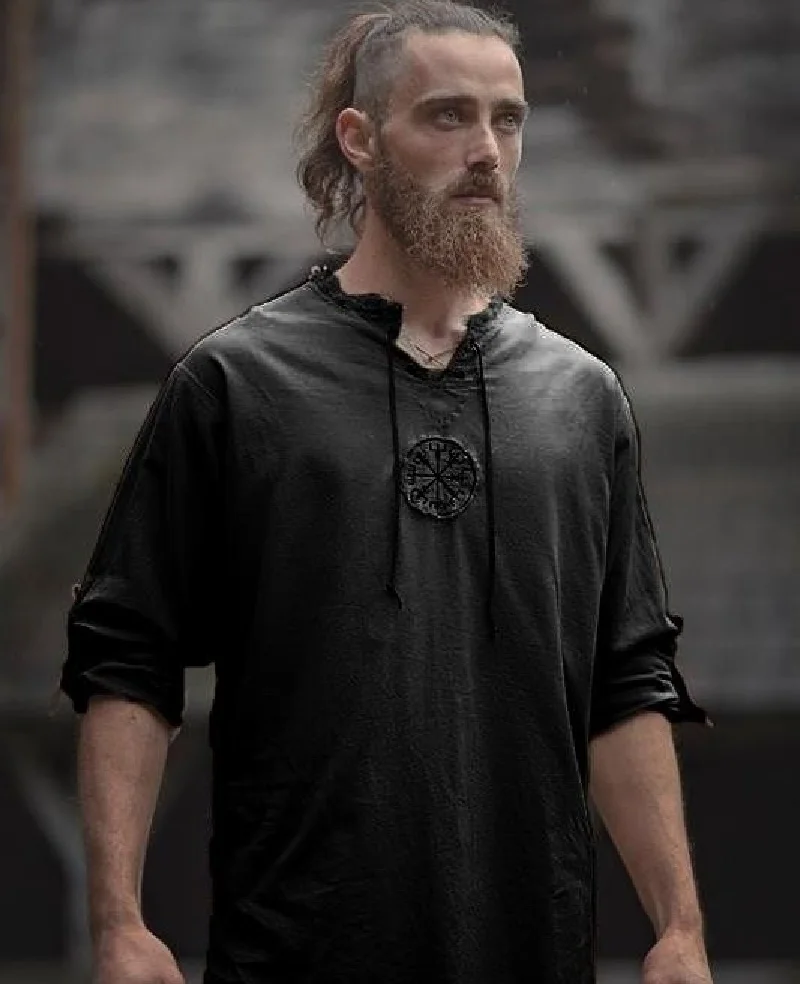 Средневековая льняная рубашка с пиратским викингом, Мужская футболк...
