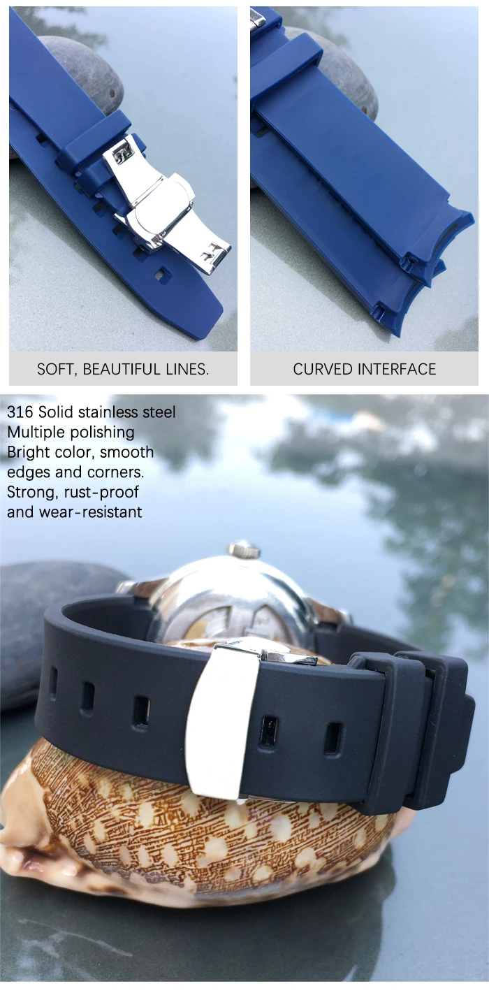 Ремешок для часов, 22 мм, резиновый, силиконовый, водонепроницаемый...